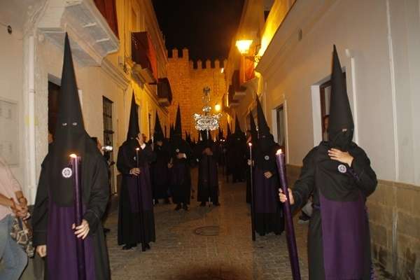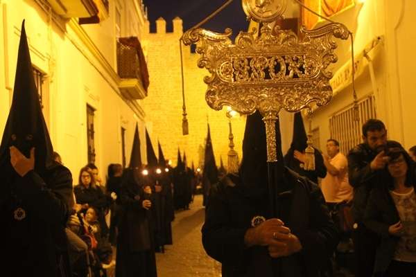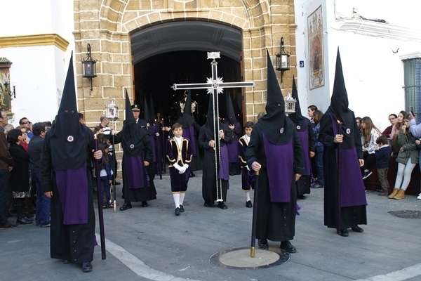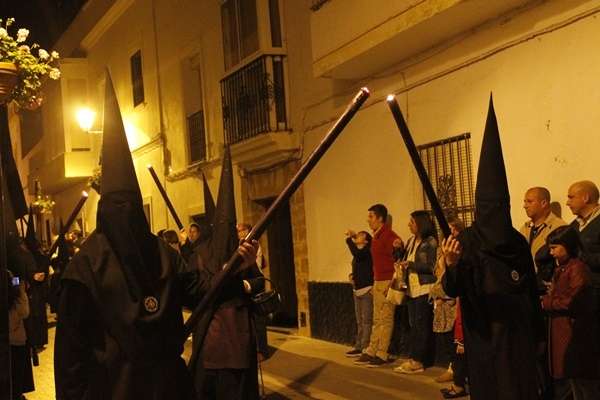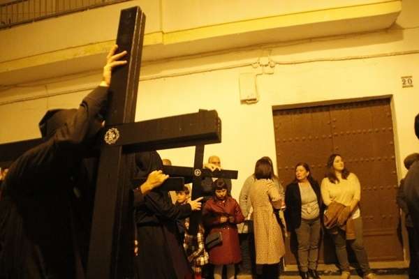 La tarde del Miércoles Santo se desarrolla sin estridencias, se tiñe de luto y sobriedad y deja ese rastro por las calles que a todas horas se mostraron repletas de ciudadanos hasta su recogida, en parte porque mañana Jueves Santo es festivo para muchos y también porque la Hermandad de la Salud, que es la segunda más joven de la Semana Santa de la villa, gusta en la calle por su paso serio y de recogimiento absoluto. Las túnicas y capirotes negros de los hermanos son un distintivo clave de esta jornada fúnebre que sólo la rompe por escasos minutos la presencia de más de una veintena de niños que forman la pavera delante del paso de palio.