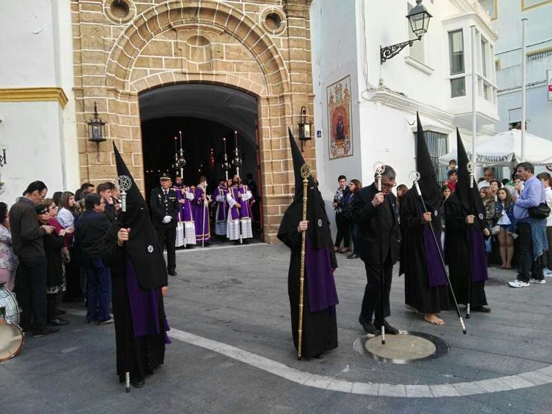 Jornada primaveral la que se vivió ayer en la localidad con espectaculares temperaturas que animaron a muchos roteños y turistas a salir a la calle para acompañar a la Hermandad de Nuestro Padre Jesús de la Salud, María Santísima de la Caridad y San Juan Evangelista en su estación de penitencia. Una salida procesional que estuvo marcada por el buen ambiente y que comenzó puntual a las 20.30 horas con la apertura de puertas de la capilla de la Caridad para dejar paso a la Cruz de Guía que marca el inicio de un cortejo que estuvo compuesto por unos 180 hermanos.
