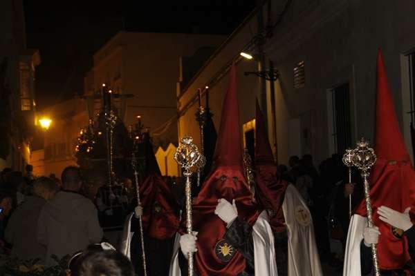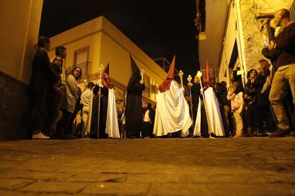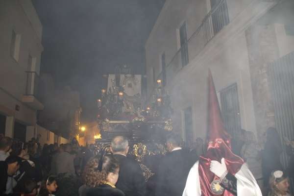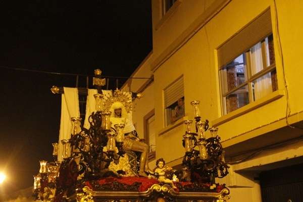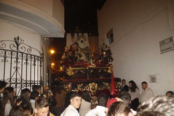 Esta cofradía, una de las que mejor tesoro cofradiero posee, destaca por su lucimiento en la calle, principalmente, cuando la banda de música de Nuestro Padre Jesús Nazareno, que la acompaña desde hace 26 años, le dedica la marcha "Campanilleros", una de las piezas con la que la cuadrilla de costaleros guiados por Pedro Merino se luce y arranca el aplauso del respetable que lo agradece. Punto esperado fue un año más, entre otros, su paso por la Cuesta de San Cayetano donde el público esperó pacientemente cogiendo sitio para disfrutar del único paso que procesionó en la tarde de ayer.
