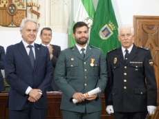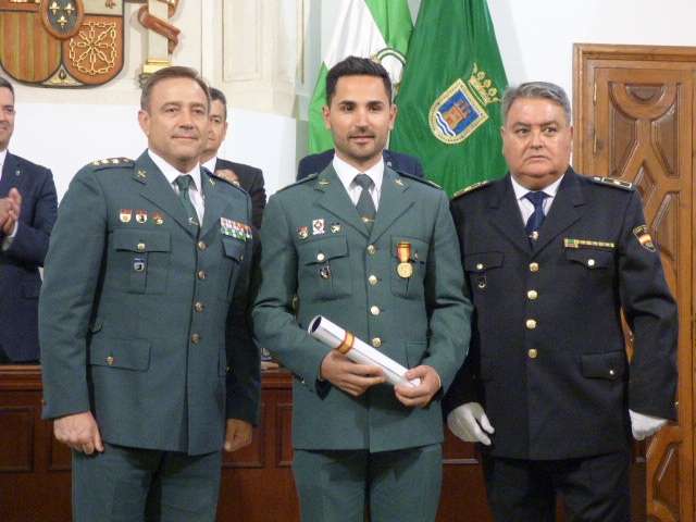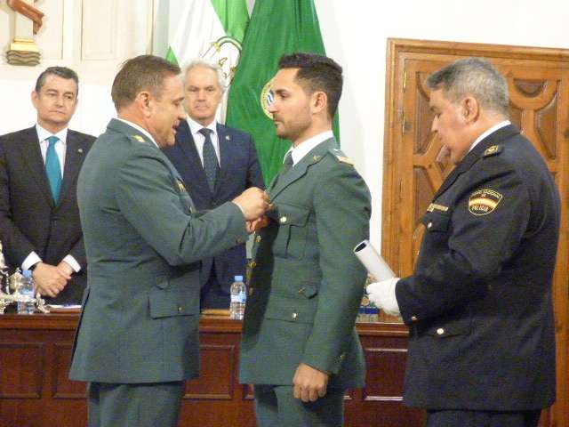 Los primeros en recoger la medalla de oro y un pergamino, fueron el sargento de la Guardia Civil, Álvaro Cano Alarcón, y el teniente de la Guardia Civil Óscar Arenas Fuentes. Ambos se mostraron muy agradecidos por este reconocimiento tras los sucesos del pasado mes de noviembre donde un grupo extremista los atacó por el mero hecho de ser guardia civiles.
