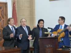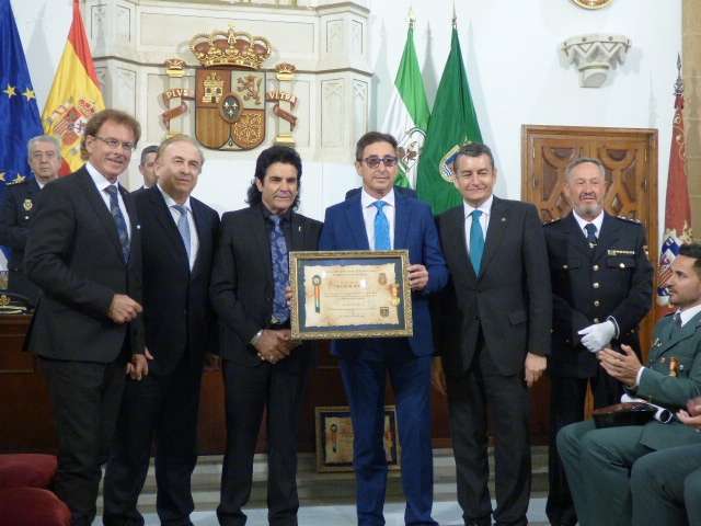 Por último, en el apartado de condecoraciones, recibía la medalla de oro y pergamino el grupo de sevillanas Ecos del Rocío que tras más de 30 años de trabajo y esfuerzo, han sabido llevar el nombre de Rota a nivel nacional. Los cuatro componentes, Jesús, Paco, Miguel y Juan Manuel, agradecieron este premio pero fue Miguel Moyares el que quiso devolver el gesto a los propios cuerpos de seguridad que velan cada día por el bienestar de los ciudadanos. Es la Policía, decía, la que debe recibir un galardón todos los días por salvar vidas. Su manera de seguir agradeciendo este homenaje fue, como no podía ser de otra manera, cantando; un gesto que el público agradeció.