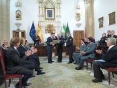 Por último, el delegado del Gobierno de España en Andalucía, Antonio Sanz, cerraba el turno de palabra con un discurso amplio en el que aparte de dirigirse a los homenajeados, tuvo especial mención para los agentes de la Guardia Civil condecorados y lo que ha representado este cuerpo para el desarrollo de la nación en términos democráticos. Sanz aseguró que los españoles tienen una deuda con los agentes y quiso mostrarles su apoyo en nombre del gobierno de Rajoy. De igual forma, como sus antecesores, destacó la importante labor de los cuerpos de seguridad y la necesidad de su coordinación entre todos para que los ciudadanos se sientan seguros. Encantado con la invitación y poder compartir este acto, insistió en la necesidad de reconocer los méritos de hombres y mujeres que velan cada día, incluso poniendo en peligro su propia vida, por que la criminalidad disminuya y el Estado del Bienestar se mantenga.