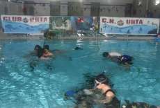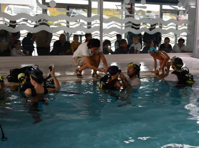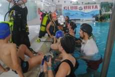 Fue en la piscina municipal, cedida por el Ayuntamiento de Rota para la ocasión, donde se llevaron a cabo estos bautismos de buceo posterior a una jornada teórica el día anterior para darle algunas nociones a los participantes de qué iban a experimentar y cómo debían hacerlo.
