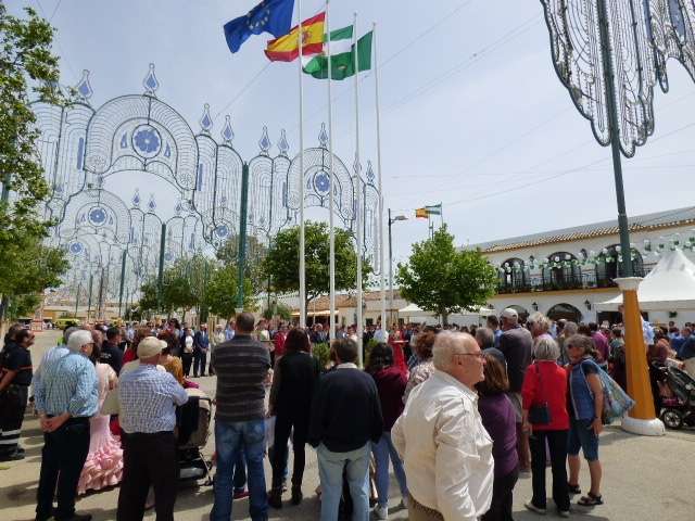 A la una del mediodía se ha inaugurado oficialmente la Feria de Primavera 2017 y lo ha hecho, como siempre, con el acto de izada de banderas en el Real hasta donde se han acercado ciudadanos, entre ellos muchas mujeres vestidas de flamenca, que han disfrutado de las primeras horas del inicio de una fiesta que hasta el domingo 7 de mayo concentrará a gran parte del público en el recinto ferial.