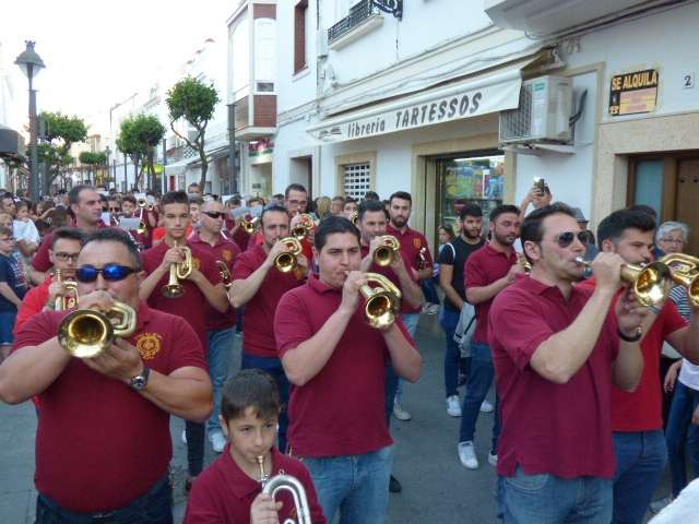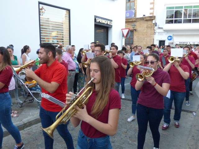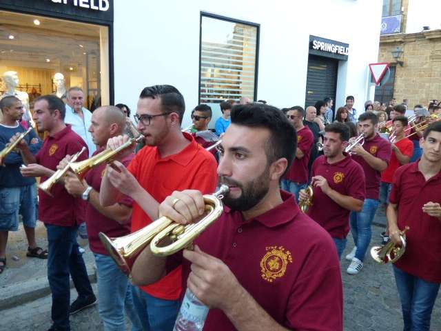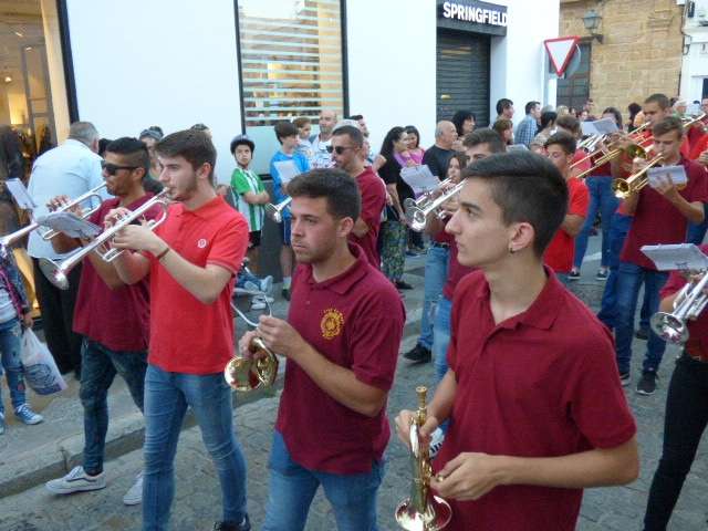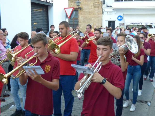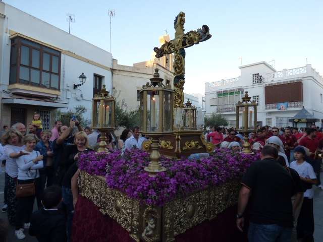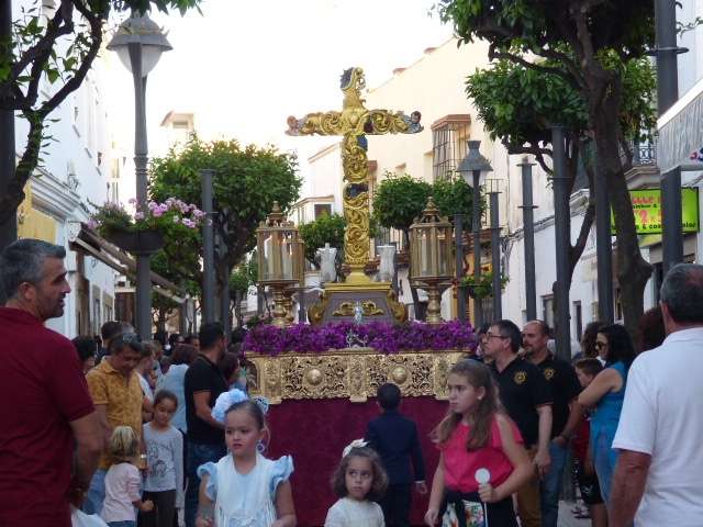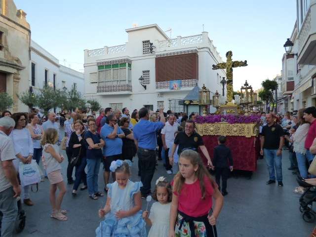 A las ocho y media de la tarde, como estaba previsto este año dos horas más tarde para favorecer mayor afluencia de ciudadanos, salía el único paso de un cortejo corto que se vio arropado sin embargo por una amplia representación de la Banda de Cornetas y Tambores de la Asociación Musical "Ruiz-Mateos" que, como cada año, colaboró con la Asociación Cruz de Mayor del Casco Antiguo que organiza desde hace más de tres décadas esta salida procesional.