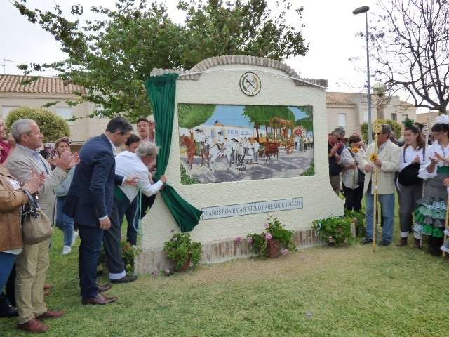 Ha sido esta mañana de domingo, de camino a los pinares para celebrar la romería, cuando la comitiva que este año ha acompañado al patrón de los agricultores ha hecho una parada en el camino. Todos los caballistas se han puesto en fila en la avenida Príncipes de España junto a los hermanos isidristas para ver cómo el alcalde de Rota, Javier Ruiz, y el hermano mayor de la hermandad, Antonio Beltrán, descubrían el gran azulejo conmemorativo que se ha colocado en un monolito que a partir de ahora, da nombre a esos jardines recordando además, estas bodas de diamante para la hermandad.