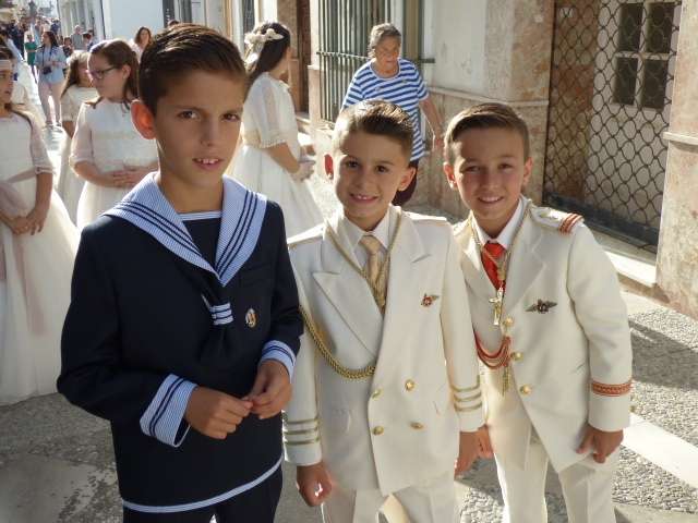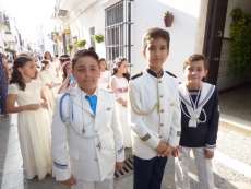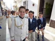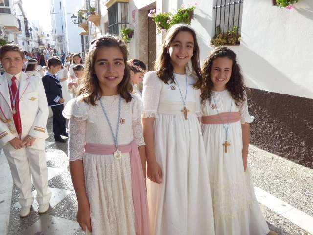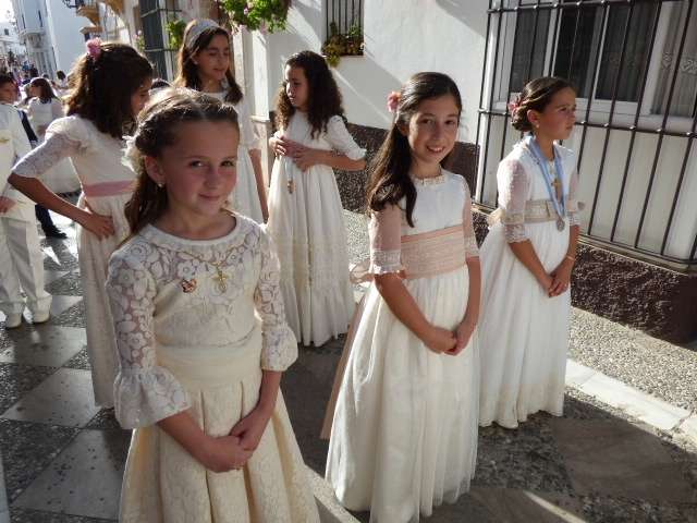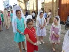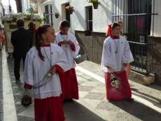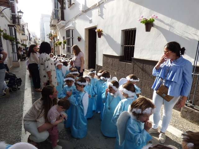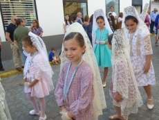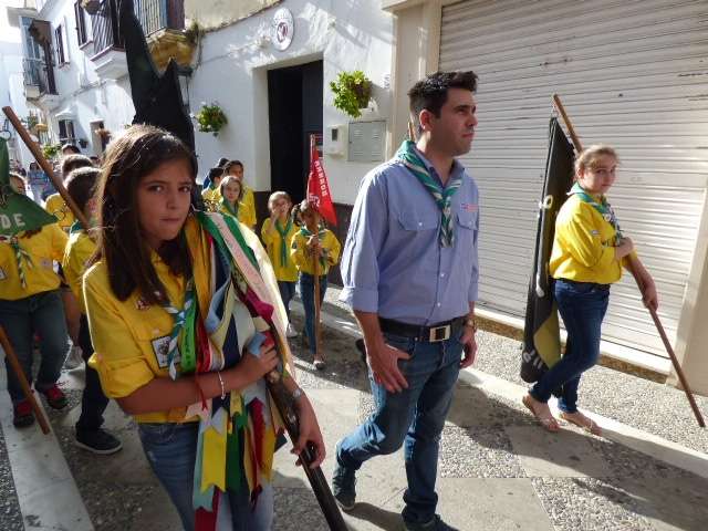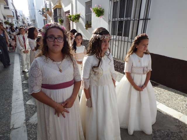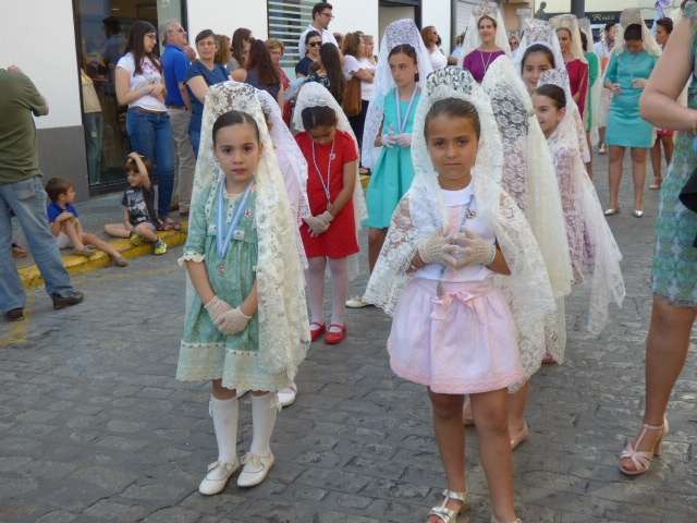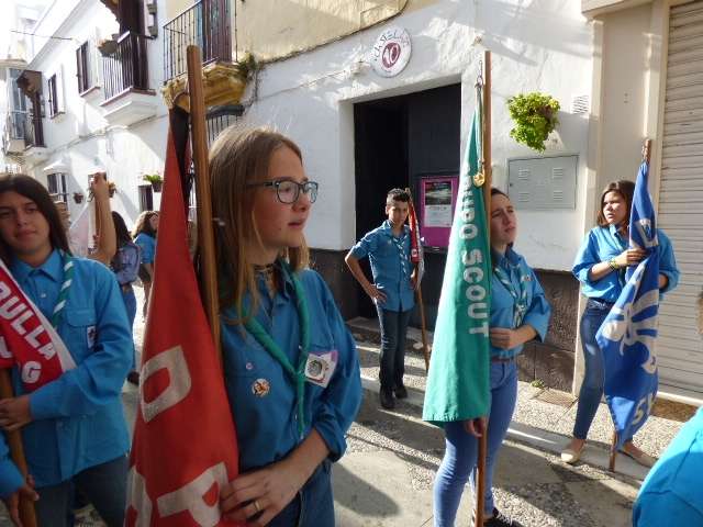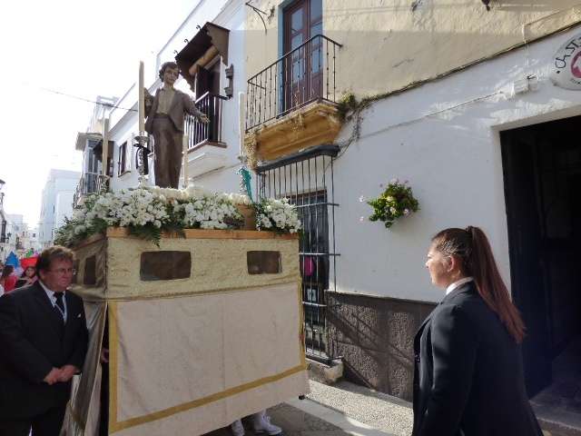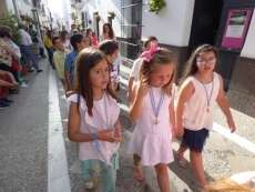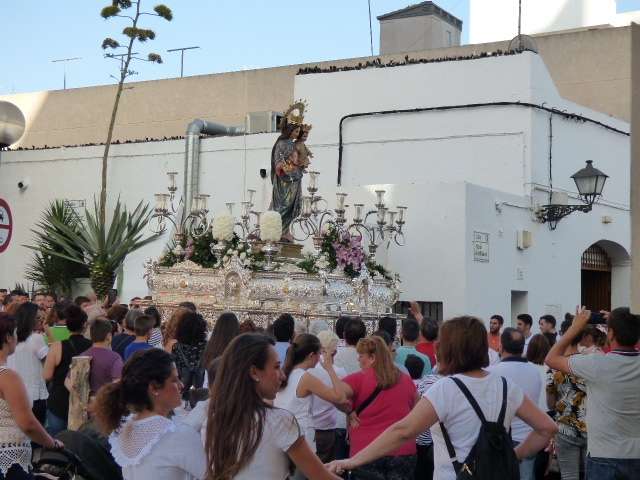 El colegio Nuestra Señora del Rosario se volcó un año más con María y también lo hicieron los roteños que salieron a ver esta procesión en una tarde bastante calurosa. Abría el cortejo un amplio grupo de niños de corta edad vestidos de angelitos, muy revoltosos como siempre, a los que guarda el orden les cuesta pero que dan un toque infantil entrañable. Le seguían más alumnos de Primaria vestidos de calle, aquellos que este año reciben su Primera Comunión, niñas muy pequeñas vestidas de mantilla, representantes del grupo scouts "Santo Domingo Savio", padres del AMPA, miembros de la directiva de los dos colegios salesianos de la localidad, así como otros representantes de la comunidad salesiana que ayer vivía un día de fiesta.