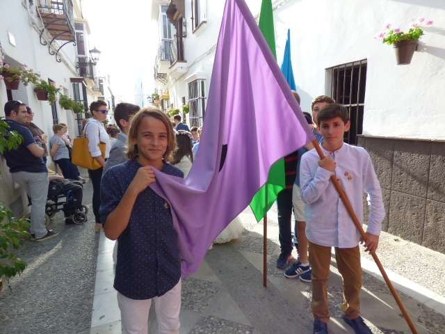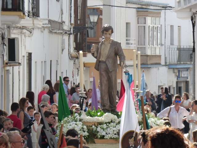 Como en ocasiones anteriores, el paso de María Auxiliadora no procesionaba sólo, lo hacía precedido por la imagen de Santo Domingo Savio y San Juan Bosco en un largo cortejo donde los pequeños fueron protagonistas. Cumplían así un año más de tradición al igual que este viernes 26 de mayo, lo hará el colegio Nuestra Señora del Perpetuo Socorro que también saldrá en procesión con su imagen de María Auxiliadora.