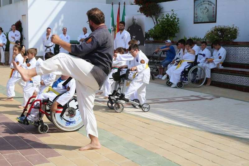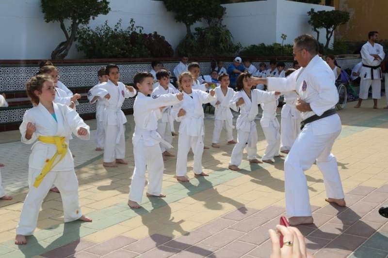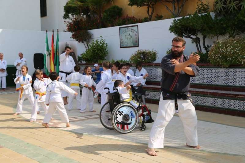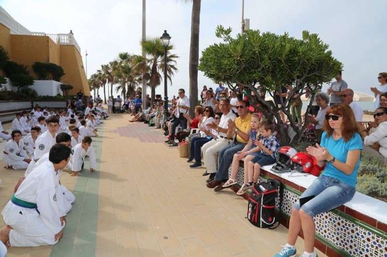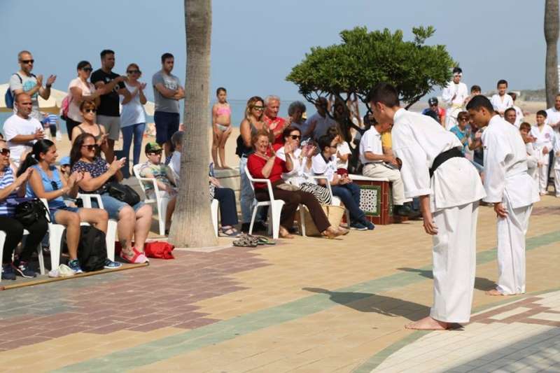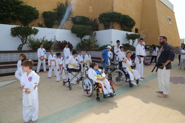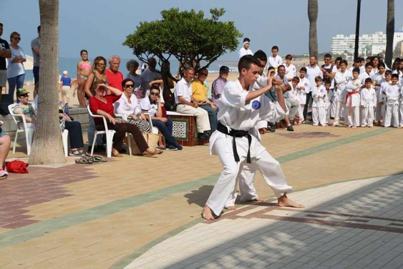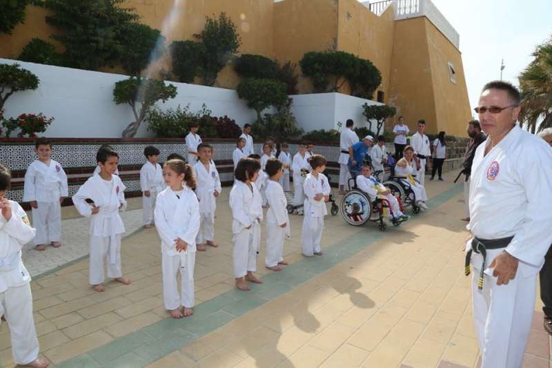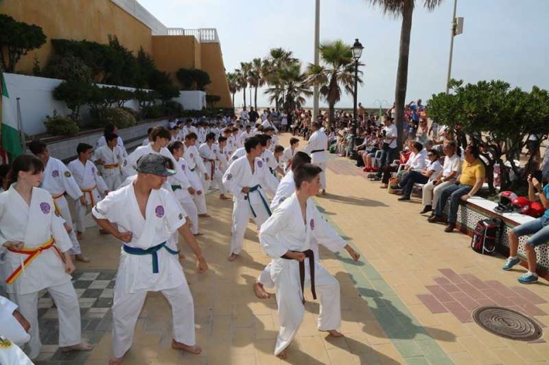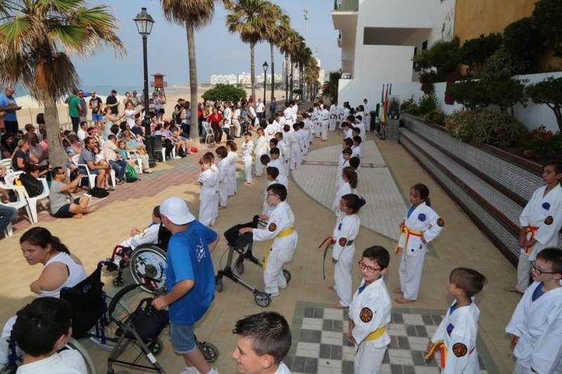 Desde los más pequeños a los adultos mostraron al público que se congregó en este punto del paseo marítimo sus conocimientos y fueron aplaudidos por su buen hacer. Destacada fue también la participación del Club Deportivo Anpehi de la localidad gaditana de Espera, que protagonizó una exhibición guiada por Antonio Pedro Hirch, 3º Dan de Nihon Tai Jitsu, con sus alumnos, chicos con síndrome de down y discapacidad, que emocionó al público por la demostración de sacrificio y esfuerzo que mostraron. Además estuvo Manuel Luque Pizarro, monitor de kárate en el colegio Luis Ponce de León.