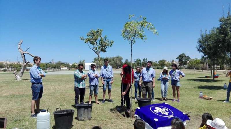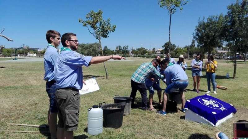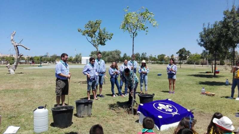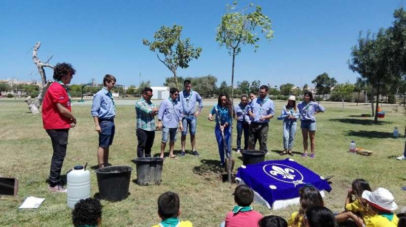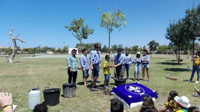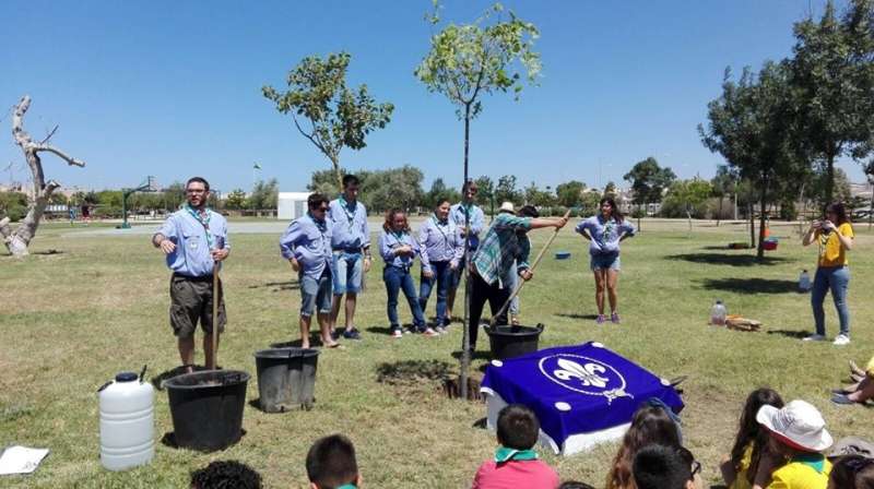 El caluroso día de ayer no impidió que fueran en torno a medio centenar de representantes de todas las ramas de scouts los que acudieran junto al delegado de Medio Ambiente al parque "Laguna del Moral" para participar de forma conjunta en la plantación de un árbol que ejemplifica y recordará para el futuro el compromiso que este grupo tiene con la conservación y respeto al medio ambiente.
