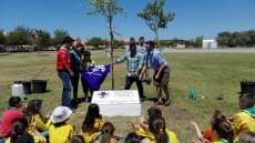 Muchos de los chicos presentes ayudaron, junto al concejal del gobierno local, a plantar el ejemplar en torno al cual se celebrarán a buen seguro muchas reuniones de scouts. Además, se procedió al descubrimiento de una placa conmemorativa con motivo de los 50 años que llevan los scouts en Rota. La placa, descubierta por Manuel Jesús Puyana en nombre del Ayuntamiento y un representante de los scouts "Santo Domingo Savio", muestra la inscripción de una cita del fundador de los scouts, Lord Baden Powel, donde se lee "Tratad de dejar este mundo en mejores condiciones de como lo encontrasteis... Grupo Scout Santo Domingo Savio 1067 - 2017".