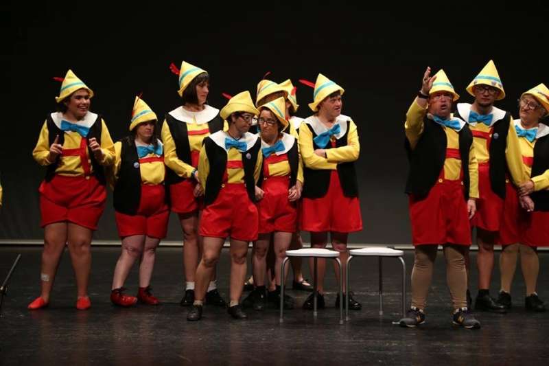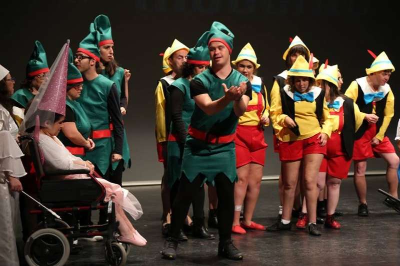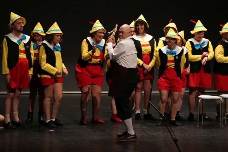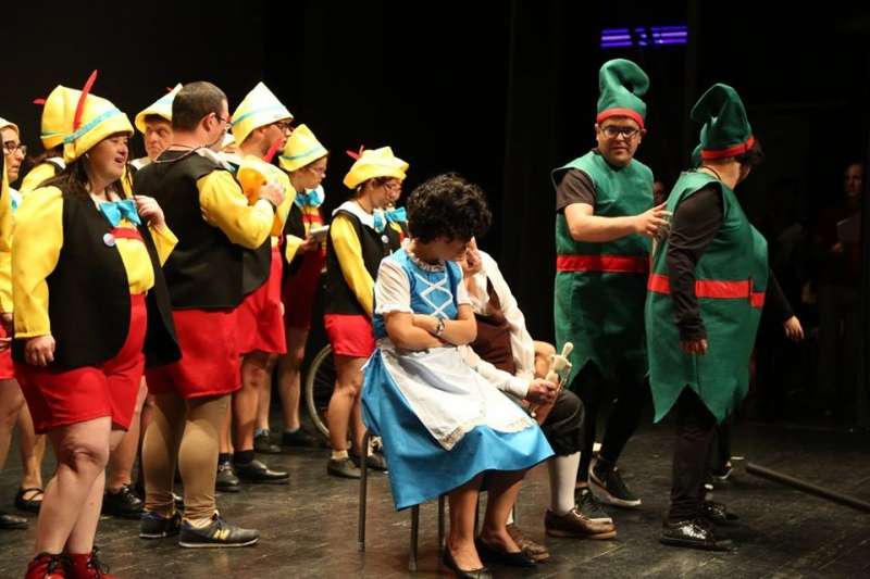 Padres y familiares de los usuarios de la Asociación de Discapacitados, monitores y ciudadanos en general disfrutaron de la puesta en escena de "Pinocho", de los bailes ensayados, del desparpajo de algunos de los chicos convertidos ayer en actores y aplaudieron con ganas el esfuerzo que supone para todos ellos.