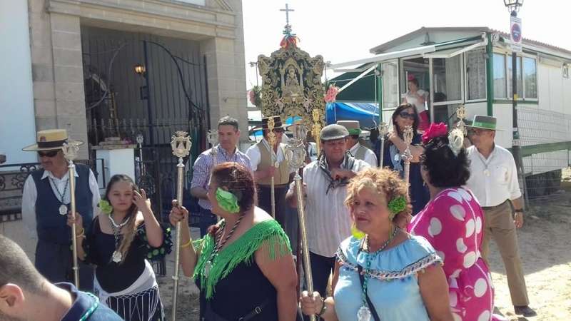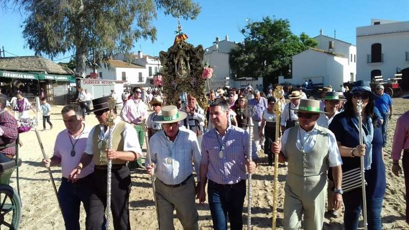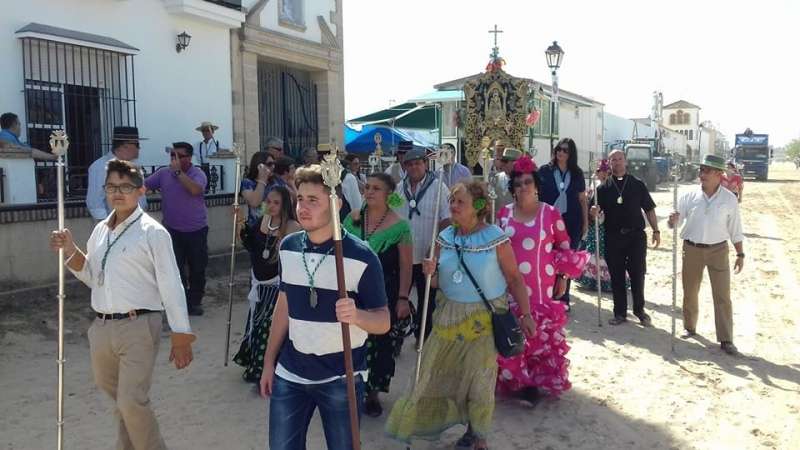 La carreta que porta el Simpecado de Rota se engalanó para la ocasión por la mañana y tomó rumbo por la tarde hacia la ermita  acompañada por la comitiva compuesta por piteros, hermanos vestidos de corto, hermanas de flamenca, junta de gobierno, rocieros, devotos en general y autoridades, entre las que se encontraba el alcalde roteño, Javier Ruiz Arana. Una vez recibida la bendición, la carreta volvía a la Casa Hermandad para seguir con las jornadas de convivencia que se aderezan con cantes y bailes.