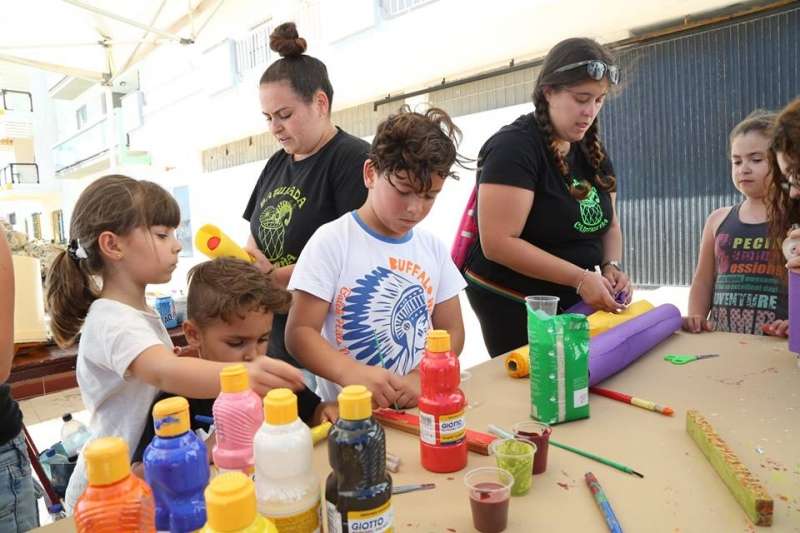 El delegado de Medio Ambiente, Manuel Jesús Puyana, junto a la delegada Esther García, compartieron con los niños participantes un rato de trabajo ayudándoles en el proceso de pintura de algunos de los materiales. La idea era hacerles ver la importancia de cuidar el medio ambiente, de usar materiales reciclados para nuevos usos y tener conciencia de la necesidad de que todos nos impliquemos en evitar más destrozos en el entorno natural que nos rodea. Dado que eran niños, también era importante que lo hicieran divirtiéndose.