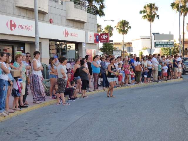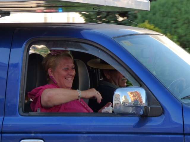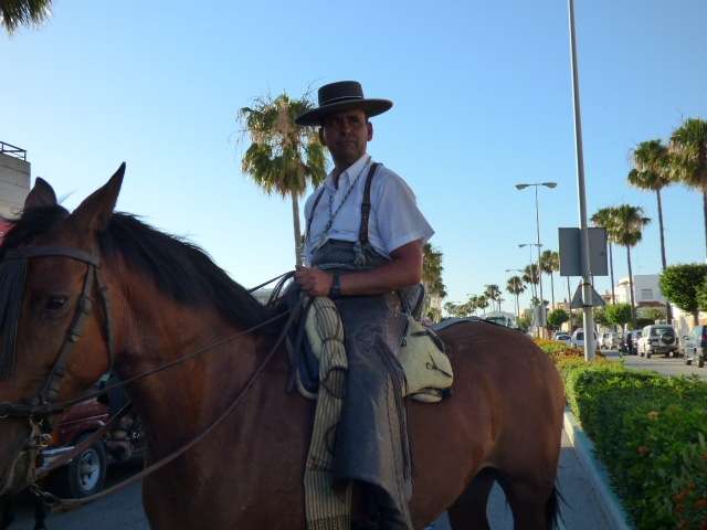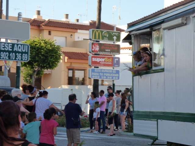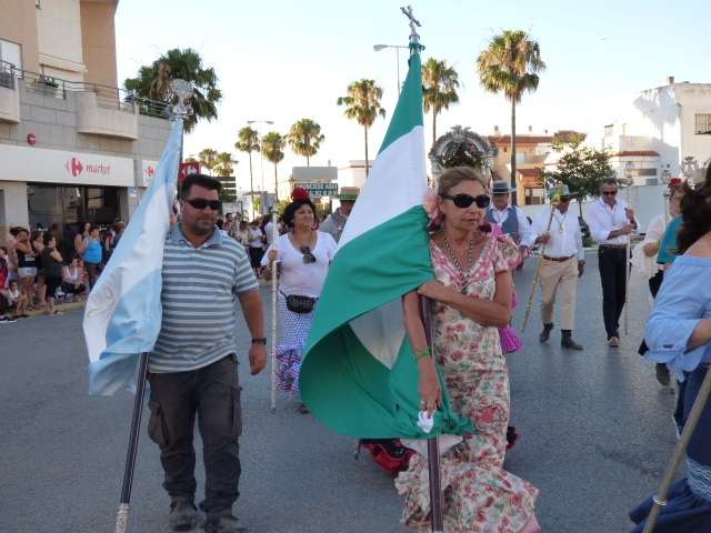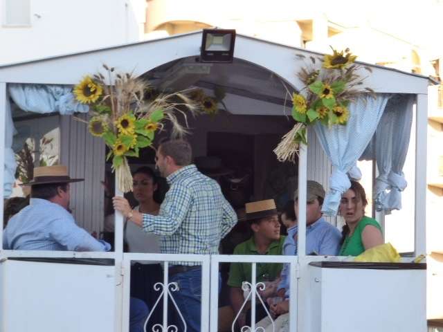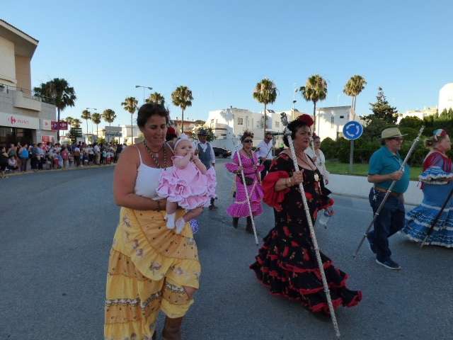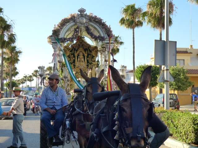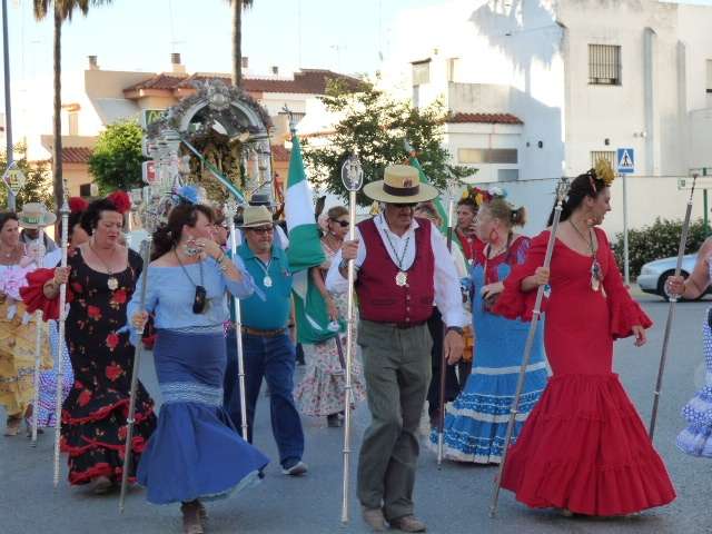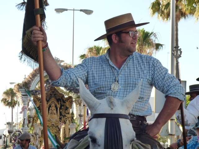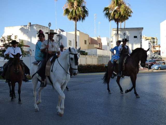 Cortejo corto, compuesto por una decena de caballos y algunas mujeres de flamenca además de la presidencia, acompañaron a la carreta del Simpecado por las calles de Rota. Una representación mucho más limitada que a la ida cuando partieron 300 romeros para hacer el camino y es que como todos los años, el trabajo y otras obligaciones no permite a todos los rocieros completar la peregrinación hasta la vuelta.
