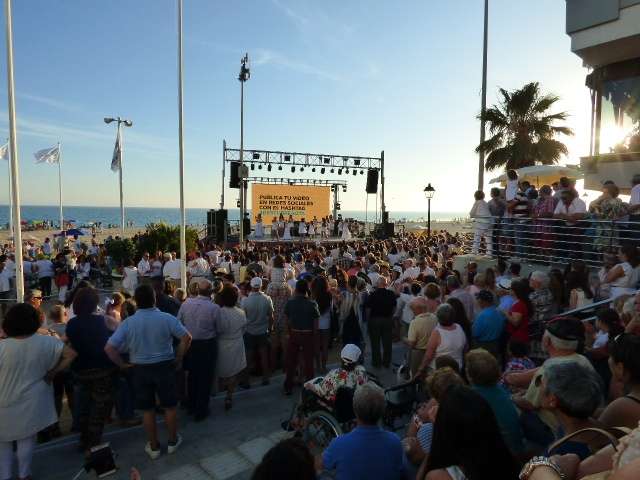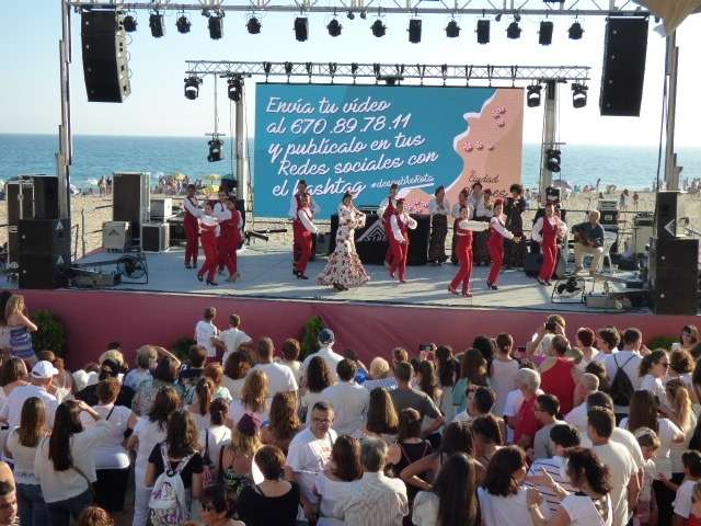 Este fin de semana además, han acompañado las buenas temperaturas por lo que la presencia de visitantes era más que evidente lo que ayudó aún más a tener un acto de inauguración de las playas muy concurrido. Desde las seis y media de la tarde sobre un gran escenario ubicado en la playa, comenzaban las actuaciones y exhibiciones protagonizadas por artistas de la localidad, grupos de zumba, flamenco, etc. Y es que si algo hubo ayer, fue participación ciudadana, no sólo la que acudió como espectadora sino la que de forma altruista se subió al escenario para entretener y hacer del primer día oficial de la temporada de verano una jornada de fiesta. El flamenco de Ofelia Márquez, el del grupo "Puro flamenco", zumba, los chicos de la escuela municipal de kárate o el flashmob de Laura Pirri y sus alumnas fueron algunas de las actuaciones que se pudieron disfrutar como antesala al acto institucional que posteriormente se vio completado con el coplero Tito Castell y la cantante Rocío Ruiz.