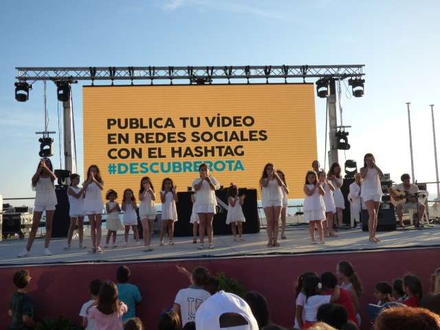 Este año, desde la delegación de Promoción Turística y la delegación de Playas, con la inestimable colaboración del roteño Manuel Barba que se curró una original iniciativa para recibir al verano 2017, el lema principal ha sido el de "Descubre Rota", un eslogan que ayer pronunciaron cientos de personas, todas las que quisieron participar en el envío de vídeos destacando algunos de los motivos para descubrir la costa roteña. Ese fue un punto de participación importante ya que fueron más de 600 vídeos grabados por ciudadanos desde distintos tramos de la costa roteña los que se enviaron a los números oficiales de whatsapp que se habilitaron para que posteriormente, se proyectaran en un pantallón gigante ubicado tras el escenario en la Costilla.
