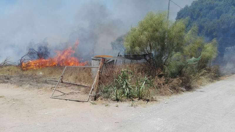 Sobre las 14.15 horas de este martes 4 de julio, se ha producido un incendio en una de las parcelas cercanas al Camino Santa Teresa a la altura de la Finca "Ave María" en el Camino Las Cañas, donde ha tenido que intervenir Protección Civil, alertado por Policía Local, para sofocar las llamas de un solar que ha arrasado unos 600 metros cuadrados de extensión. Afortunadamente, han sido ramas y matojos lo que han ardido aunque las llamas han llegado hasta las lindes de parcelas colindantes quemando incluso la valla perimetral que las rodeaba.
