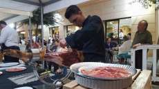 Organizado por la delegación de Promoción Turística en colaboración con el cortador roteño Isaías Domínguez Vega, vecinos y visitantes pudieron además degustar los platos que se estaban cortando in situ gracias a la barra de bar solidaria que montó la Hermandad de Nuestra Señora de los Dolores a la que se donaban las raciones de jamón para poder venderlas al único precio de 5 euros y recabar fondos para la bolsa de caridad. Un dinero que junto al de la venta de otras tapas y bebidas, servirá para seguir ayudando a los más necesitados de Rota.