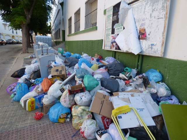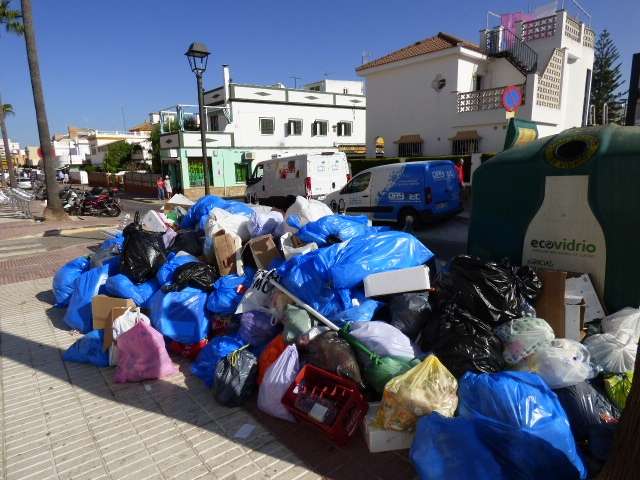 Más de 135.000 kilos de basura están repartidos por las calles de Rota