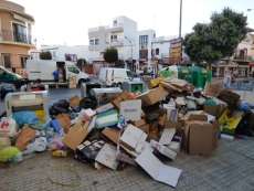 Más de 135.000 kilos de residuos están dispersos por la localidad, según datos que esta mañana ha dado el primer teniente de alcalde, Daniel Manrique de Lara, a los que habría que sumar lo acumulado desde anoche, con lo que la situación comienza a ser insostenible en algunos puntos.