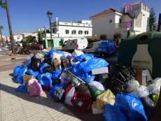 Aunque los servicios mínimos decretados, compuesto por cuatro operarios de limpieza viaria, un camión de recogida trasera y otro de recogida soterrada se afanan en dejar la zona centro decente, dado que es el punto donde hay mayor afluencia de ciudadanos, no están siendo sufcientes. Hay contenedores que rebosan bolsas y que comienzan a ocupar parte del acerado dejando incluso intransitable algunos tramos.