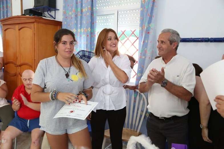 En el acto de clausura estuvo este año el alcalde de Rota, Javier Ruiz Arana, la diputada provincial de Igualdad y Bienestar Social, Isabel Armario, y miembros de la Corporación municipal, además de monitores y padres de los alumnos que aplaudieron la entrega de diplomas a los chicos que han participado en los cursos y reconocieron  la labor del voluntariado que ha estado día a día en los talleres. Una forma esta de reconocer la labor de voluntarios como Isabel, Álvaro, Rosa, Héctor, Alejandra o Martina, que se han encargado de impartir los talleres para que los usuarios de la Asociación de Discapacitados pasaran un verano divertido  con clases de zumba, matemáticas o patchwork.