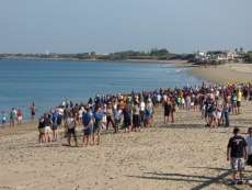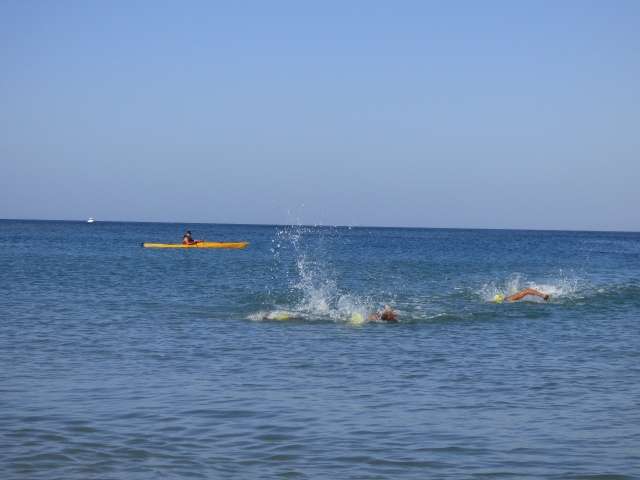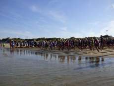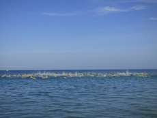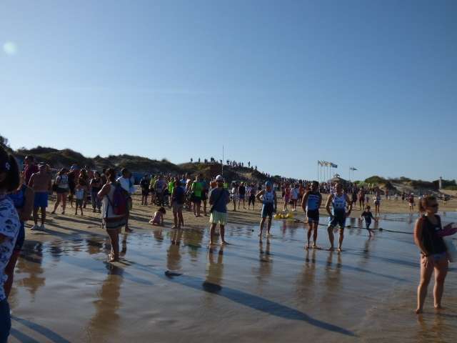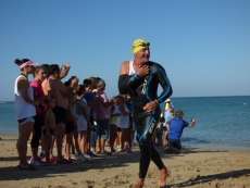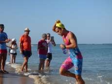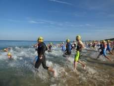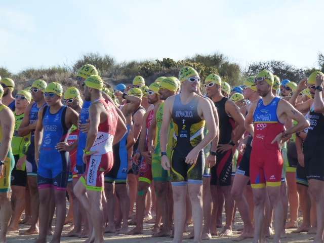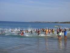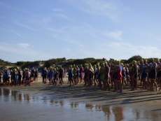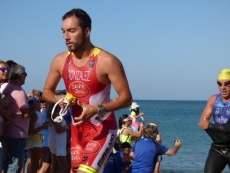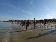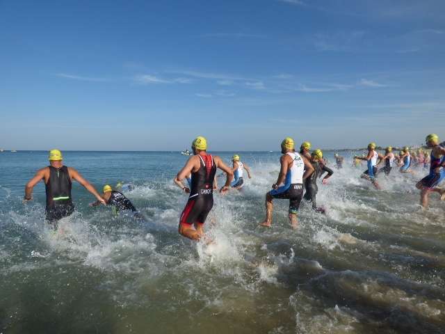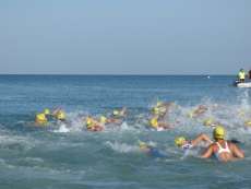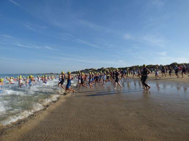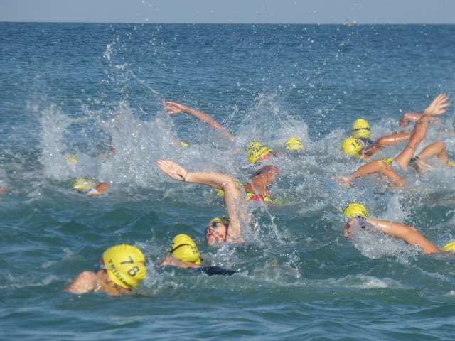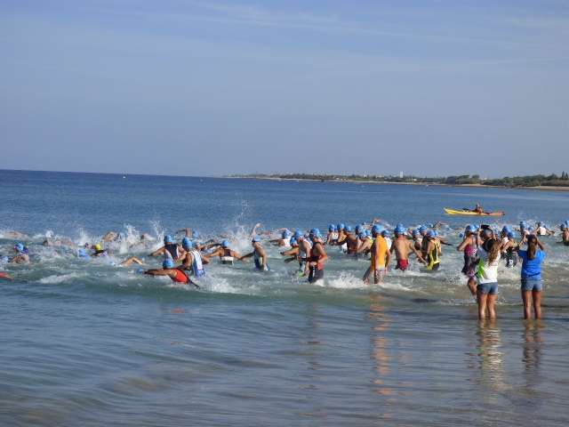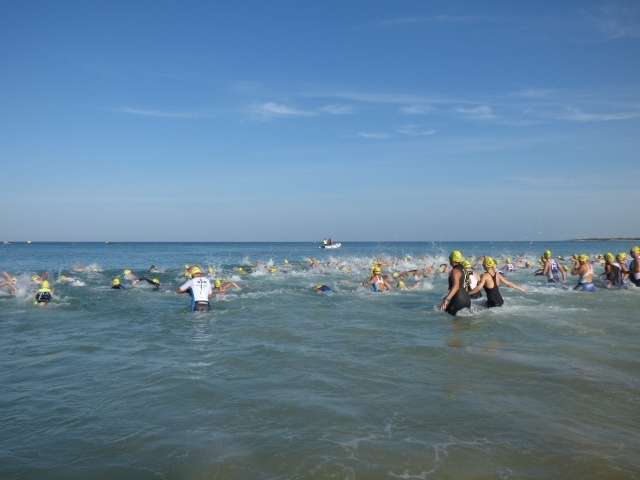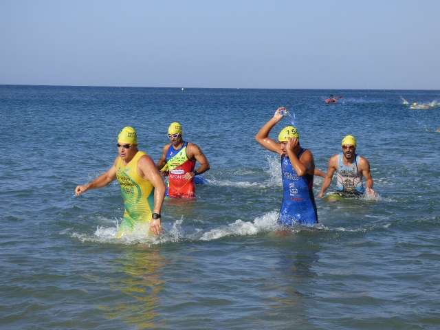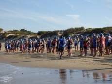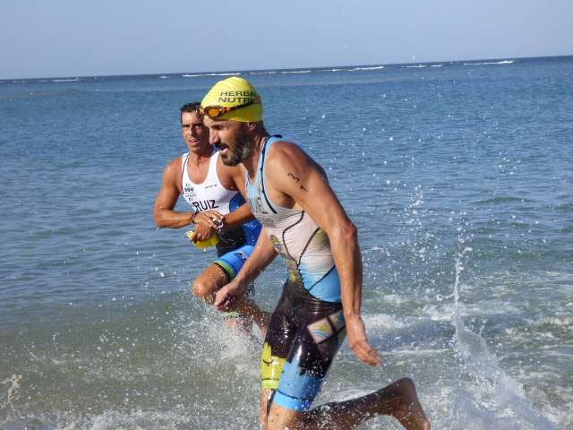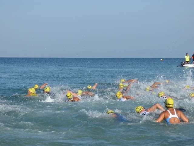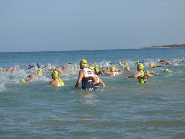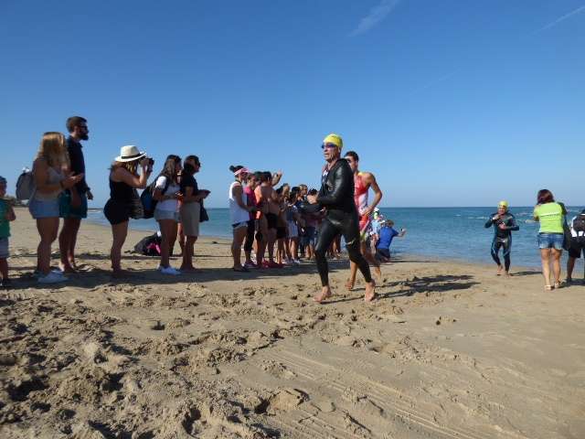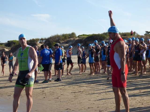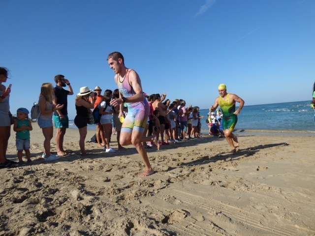 A las diez de la mañana desde la orilla de la playa partía la primera tanda de corredores para afrontar los 750 metros de natación seguidos diez minutos después de la siguiente salida, organizada de este modo para evitar tanta aglomeración en el circuito que se completaba con 20 kilómetros en bici y 5.000 metros de carrera a pie.