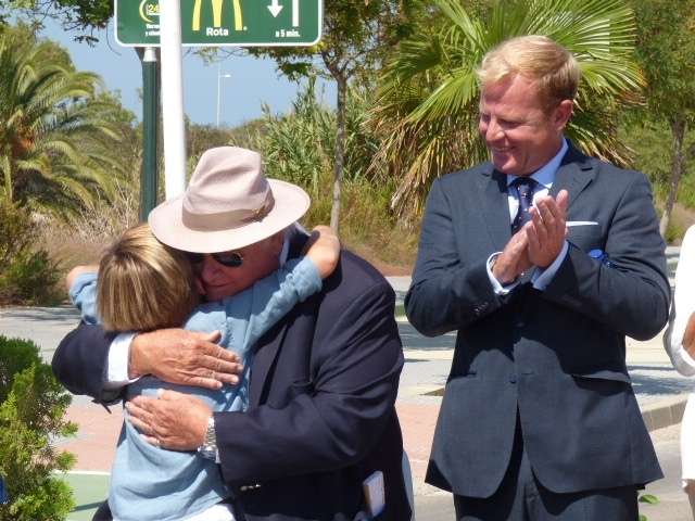 El deseo fue compartido por el alcalde de Rota que no quiso dejar de repetir que esta zona no está oculta al mundo en parte, gracias a Jan De Clerck y su trabajo por mostrar la idiosincrasia de este pueblo al extranjero. Él, decía, cree en un turismo que sale de los números y beneficios, cree en el turismo del corazón y los sentimientos y precisamente por ese amor a la Costa de la Luz y a Rota, hoy es bien merecido tener rotulada una avenida con su nombre; una rotulación que hará que su figura y trabajo permanezcan en el futuro como un loco enamorado de esta tierra que cuando la pisó hace más de 50 años nunca pensó que quedaría tan unido a ella. Javier Ruiz ha felicitado al empresario belga por su dedicación, su compromiso y su trabajo por Rota y su turismo, lo que le han llevado hoy a ser protagonista de esta rotulación con un monolito que da nombre a la avenida que lleva directamente a la playa de Punta Candor, enclave esencial en la costa roteña.
