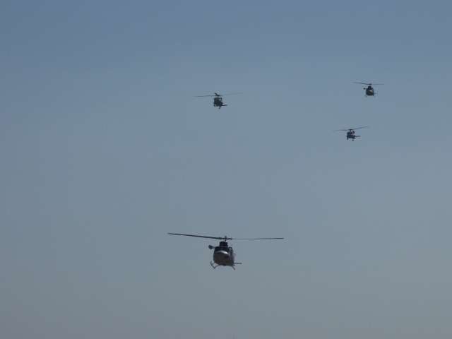 El público asistente ha podido ver además en el acto un desfile aéreo en el que han participado, por un lado, los Sikorsky SH-3D/W "Sea King" de la Quinta Escuadrilla de la Flotilla de Aeronaves (FLOAN) y los aviones AV-8B Harrier II Plus de la Novena,  así como los helicópteros AB-212, los aviones Cessna, los helicópteros Hugues 500 (H-500) y los Sikorsky SH-60 / MH-60 'Seahawk', de la Tercera, Cuarta, Sexta y Décima Escuadrilla respectivamente.