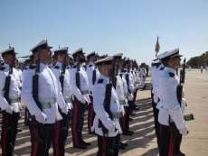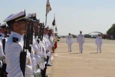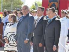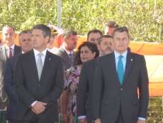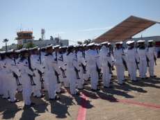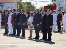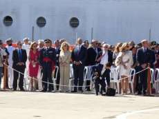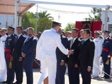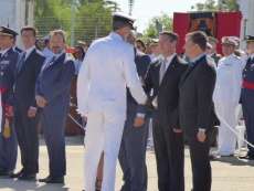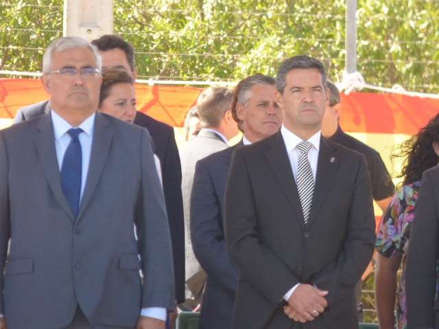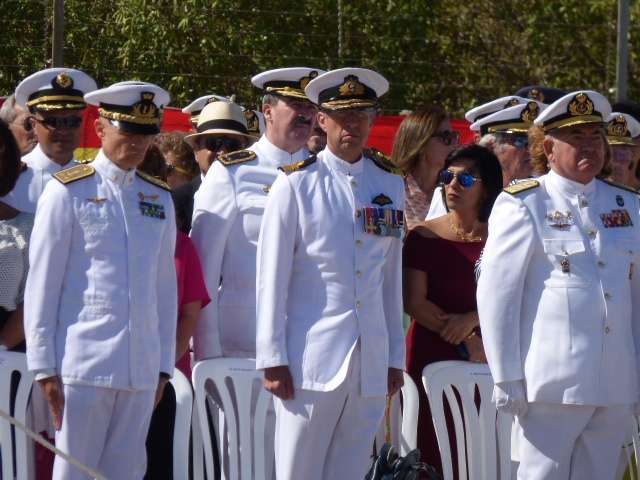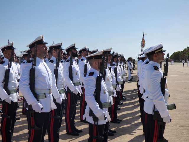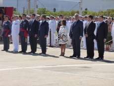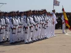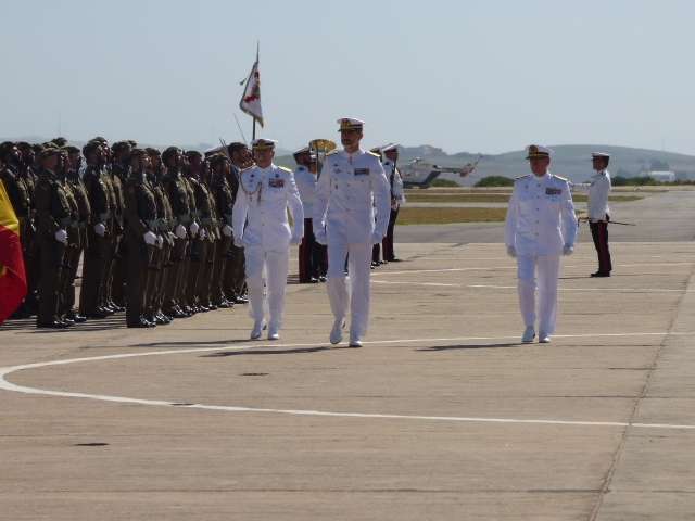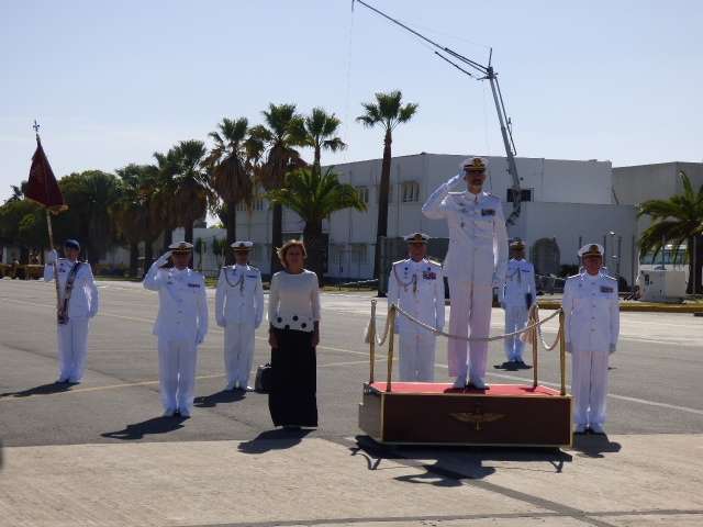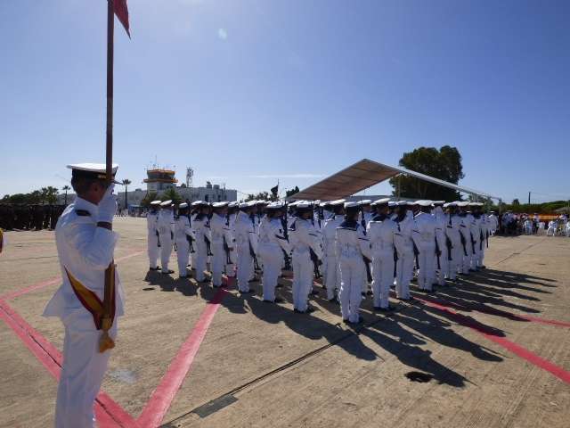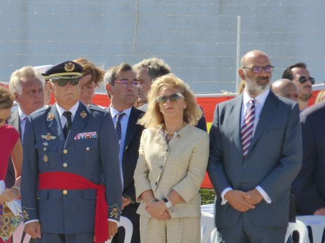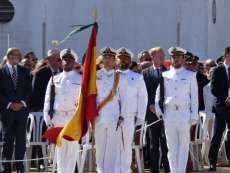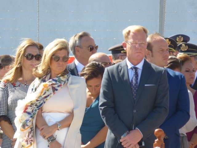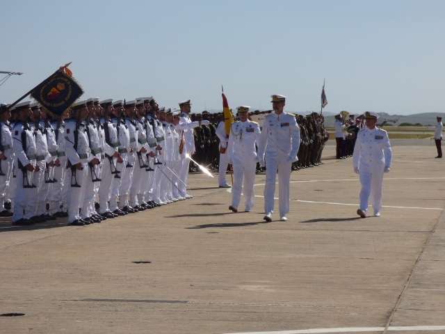 Ha sido en el aeródromo de la Base Naval donde se ha llevado a cabo el acto central con la participación de los ejércitos formados en una explanada donde el viento de poniente ha ayudado a sobrellevar a las doce del mediodía una temperatura que de otro modo hubiera sido calurosa.