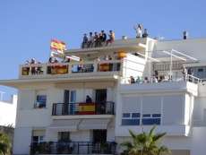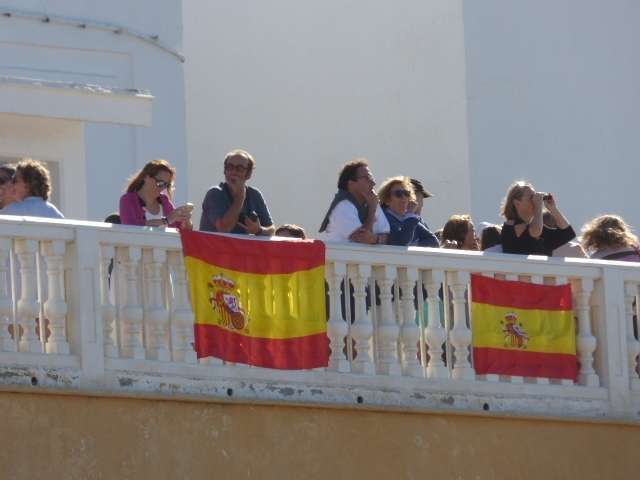 Por megafonía se ha podido escuchar a algunos pilotos saludando al pueblo de Rota y felicitando a la Aviación Naval por su centenario. Todos han deseado una buena jornada de celebración, y sin duda, lo está siendo. En señal de orgullo de las Fuerzas Armadas, hoy se han lucido también banderas de España en mano, balcones y azoteas. Una forma, como pedía UPyD de mostrar ese agradecimiento a la labor que realizan.