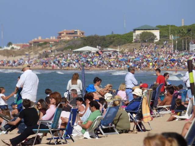 Como espectáculo, esta exhibición áerea tenía todos los ingredientes. Más de 20 modelos diferentes de aeronaves han pasado por el cielo roteño aunque todavía se espera el colofón final con la Patrulla Águila. Piruetas, vuelos bajos, despegues verticales o giros de 360 grados y pasadas a mucha velocidad han sido aplaudidas por el numeroso público que ha dado una vida impresionante en un sábado de septiembre en el que lo habitual es que el ambiente y trasiego de gente baje. Hoy sin embargo, Rota luce pletórica.