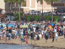 Se preveía y se ha cumplido. Rota está hoy sábado 16 de septiembre a rebosar de gente. Roteños, turistas que aún pasan sus vacaciones en la localidad y vecinos de otras localidades cercanas están disfrutando en la mañana de hoy del acto central de celebración del 100 cumpleaños de la Aviación Naval en España.