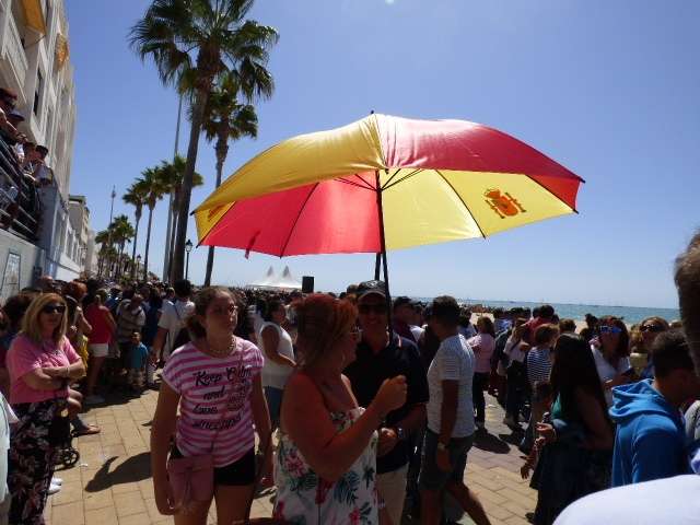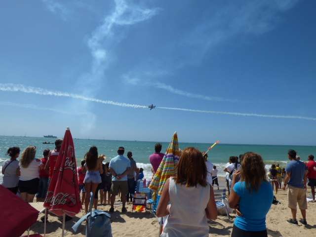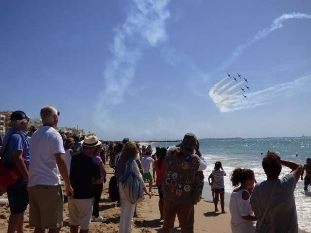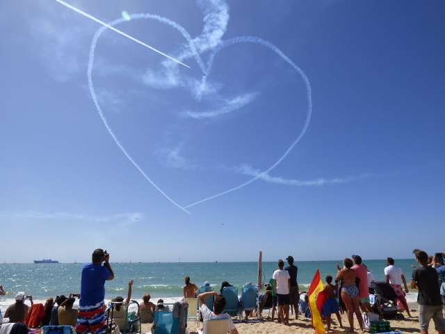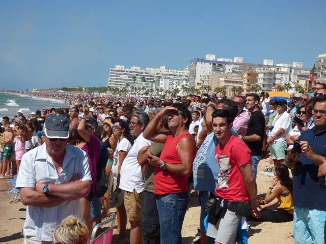 En la exhibición han participado aeronaves nacionales y extranjeras: por parte de la Armada las aeronaves de la Flotilla de Aeronaves operando desde el LHD “Juan Carlos I” y desde la Base Naval de Rota. Por el Ejército del Aire ha participado Eurofigther (C-16), un HD-21 Super Puma y un P3B mientras el Ejército de Tierra ha aportado un helicóptero HT29 Caimán, un HT17 Chicook y un HT27 Cougar. Además participaron un P8 Poseidon de la US NAVY, un AS-365 Dauphine, un BK-117 y un EC-135 CN-235 de la Guardia Civil, , un AS-365 Dauphine de los Servicios de Vigilancia Aduanera y por la Fundación Infante de Orleans un C-45, un T-6 y un T-34ª. Con las piruetas, bajos vuelos, giros de infarto, despegues verticales, etc., llegaba el broche de oro con las siete aeronaves de la Patrulla Águila 7xC-10, sin duda, uno de los mejores momentos que ha podido disfrutar el numeroso público apostado en la playa de la Costilla.