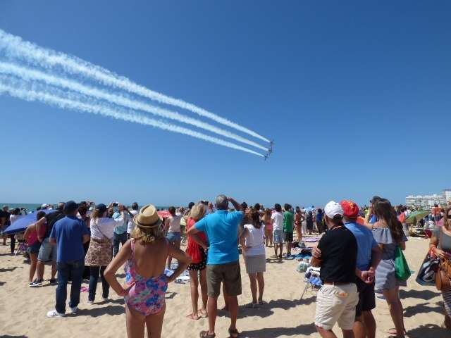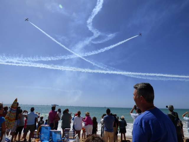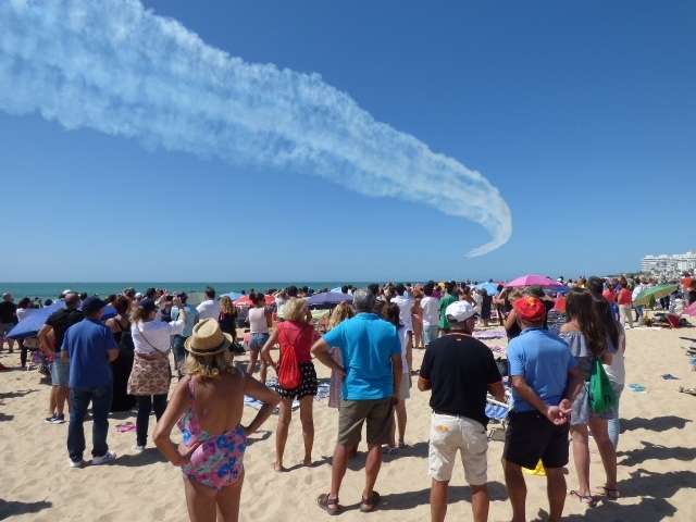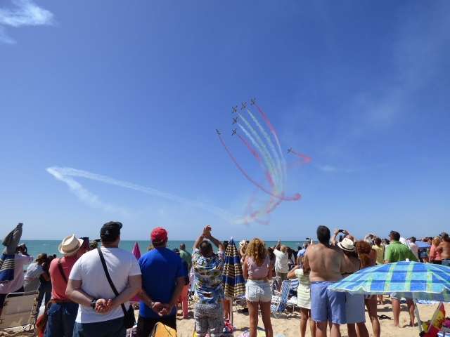 Los miles de roteños y turistas que han estado en la playa de la Costilla y alrededores desde las 11 de la mañana hasta pasadas las dos de la tarde, han disfrutado de este broche final que terminaba con palabras de agradecimiento del piloto de esta expedición compuesta por siete aeronaves que aunque han sido el punto y final de la demostración aérea, no ha sido lo único que ha podido ver el público.