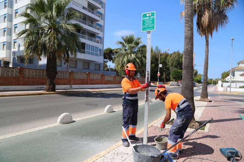 El Ayuntamiento mejora la señalización del carril bici del paseo marítimo