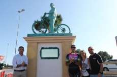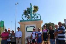 En este mismo punto, antes de terminar la ruta, se ha procedido al descubrimiento de un monumento dedicado al ciclista y a todos los que han perdido la vida mientras practicaban este deporte. El alcalde de Rota, Javier Ruiz, junto al delegado de Deportes, José Antonio Medina, que ha estado participando de forma activa en esta ruta ciclista, así como miembros de la Agrupación Ciclista Montano y familiares de Montano Arjona, un roteño que falleció hace cuatro años mientras participaba en la Maratón BTT "Villa de Rota", han estado muy presentes. Y es que ha sido gracias a la familia de Montano, que se han encargado de realizar el monumento y cederlo al Ayuntamiento, el inicio de la vía verde cuenta con este homenaje a los ciclistas.