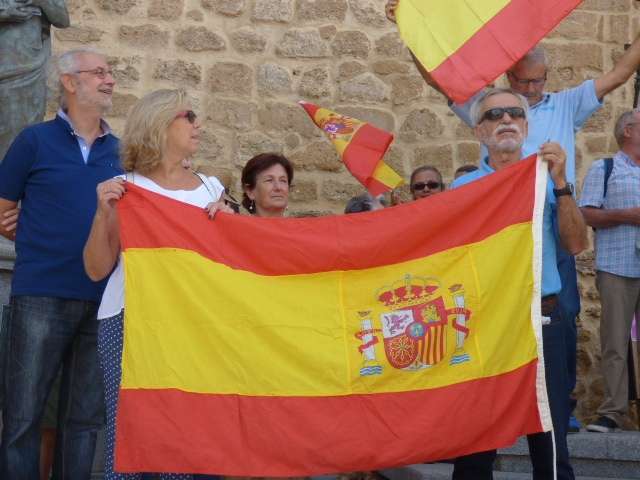 Aunque en número es bajo en comparación con otras provincias y ciudades, para Rota es hasta casi aceptable teniendo en cuenta la respuesta de convocatorias similares por otros temas donde la afluencia tampoco despunta. Eso sí, los que han estado se han hecho notar. Grandes banderas de España, alguna de Andalucía y gritos de "Viva España" se han podido oír durante la media hora aproximadamente que ha durado la movilización. Una convocatoria que a la mayoría ha llegado por redes sociales y mensajes de Whatsapp pero que partía principalmente de organizaciones y partidos políticos vinculados a la derecha, como la Fundación para la Defensa de la Nación española (DENAES) con el lema "Es hora de que se escuche a la España silenciosa y España somos todos".