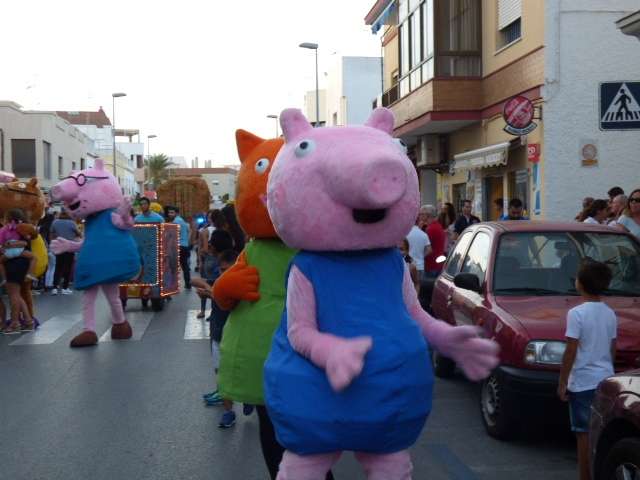 Muchos ciudadanos han salido a la calle para disfrutar de esta cabalgata infantil en la que se ha podido ver a los típicos cabezudos seguidos de los personajes de la serie de  animación infantil Peppa Pig y los Simpsons. A ellos se han sumado unos divertidos duendes que con grandes pelotas han animado al público a participar de forma activa.