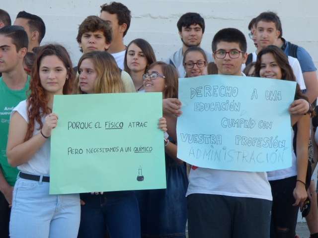 Tres semanas por tanto, en las que alumnos del IES Arroyo Hondo, cuando les toca recibir clases de Física y Química, tienen tiempo libre. Una situación que además, para preocupación de los propios estudiantes, equipo directivo y padres, no parece que vaya a tener solución inmediata porque no son los únicos en la provincia. Por ello, esta mañana a primera hora, cuando deberían estar en clases con su profesor de Física y Química recibiendo formación en esta materia, han estado en la calle, a las puertas del instituto, reivindicando atención a su educación.