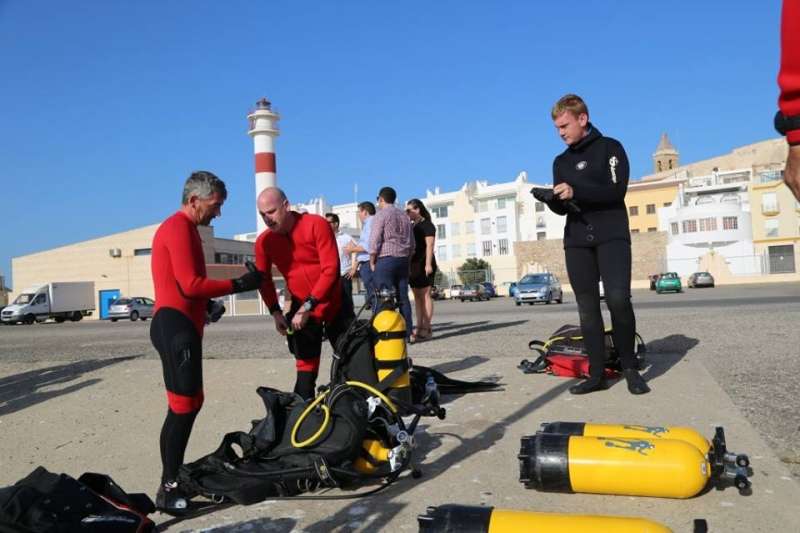 Durante la jornada de limpieza del fondo marino estuvieron presentes el primer teniente de alcalde, Daniel Manrique de Lara, y el delegado de Medio Ambiente, Manuel Jesús Puyana, respaldando desde el Ayuntamiento esta actividad voluntaria.