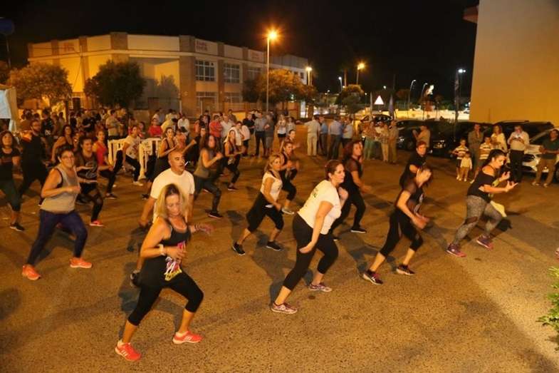 Tras algunas actividades en empresas, en la explanada junto a la jefatura de la Policía Local, donde se ha dispuesto de un escenario para las actuaciones y de un gran stand con información de todas las empresas del polígono industrial "Santa Cruz", llegaba una clase de zumba que animó bastante el ambiente y calentó motores para el acto protocolario de inauguración de una iniciativa que pretende poner en valor el tejido empresarial y comercial del polígono en concreto, pero de Rota en general.