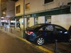 Una conductora que circulaba desde calle Castelar en sentido hacia María Auxiliadora, ha chocado contra un vehículo que se encontraba estacionado en la acera de su derecha, en la puerta de la antigua librería Atenea, para terminar subiéndose como consecuencia del mismo impacto en la acera de enfrente, contraria al sentido en el que iba circulando.