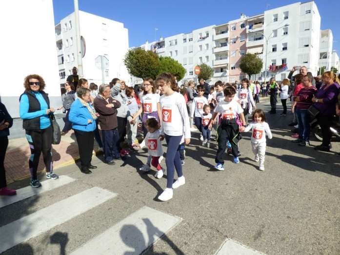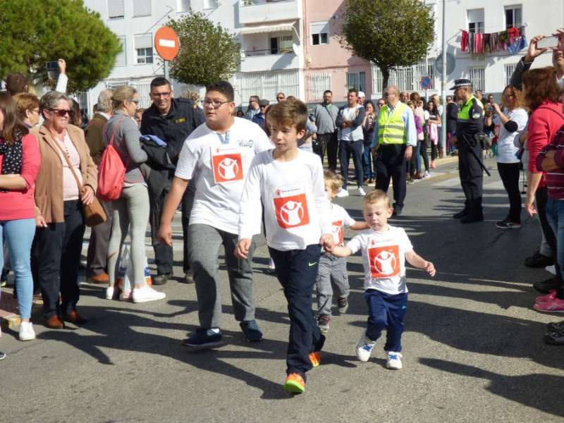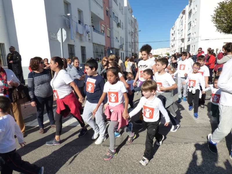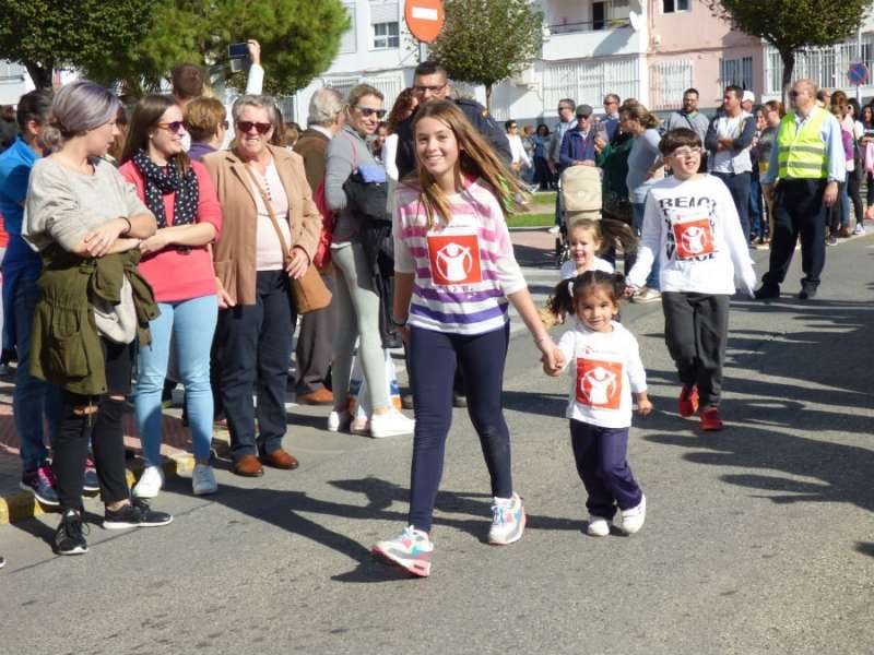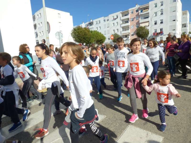 Padres, madres y familiares, además del delegado municipal de Deportes, José Antonio Medina, se han agolpado en las inmediaciones del centro educativo por donde ha discurrido la carrera. Han sido los más pequeños los primeros en salir, acompañados de sus padrinos. Y es que hay que recordar que el Maestro Eduardo Lobillo pone en marcha en cada curso escolar un proyecto de apadrinamiento en el que alumnos de cursos superiores apadrinan a los del ciclo de Infantil, propiciando entre ellos una relación estrecha que se palpa en cada actividad conjunta del centro. Los pequeños de 3 y 4 años han corrido junto a sus padrinos animados por el público presente. Posteriormente, lo hacían los más mayores completando asi una hora y media, entre las 12.00 y las 13.30 horas, de solidaridad y deporte.