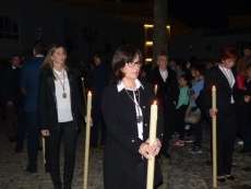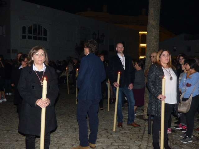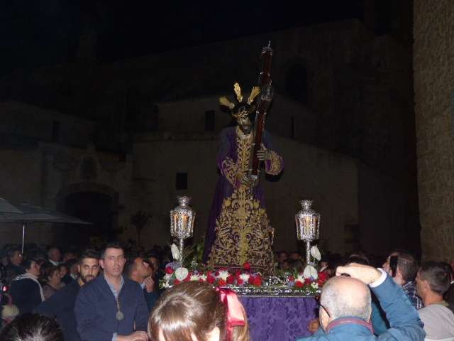En el silencio de la noche que fue cayendo con mucha humedad pero bien de temperaturas, sólo se escuchaban los sones de las cajas chinas que palilleaban los músicos de la Banda de Música de la Hermandad de Nuestro Padre Jesús Nazareno y las trompetas de Jesús, particular sonido de la Semana Santa. Tras ellos, una amplia representación de hermanas y devotos que acompañaron al Nazareno en su recorrido por las calles del casco histórico.