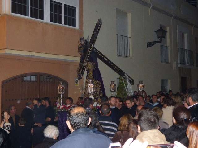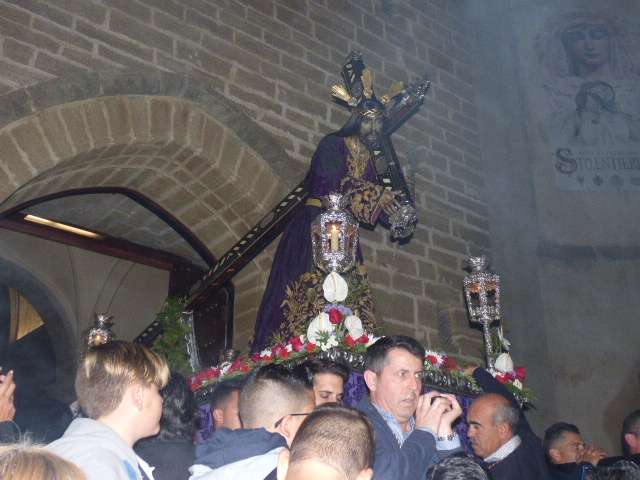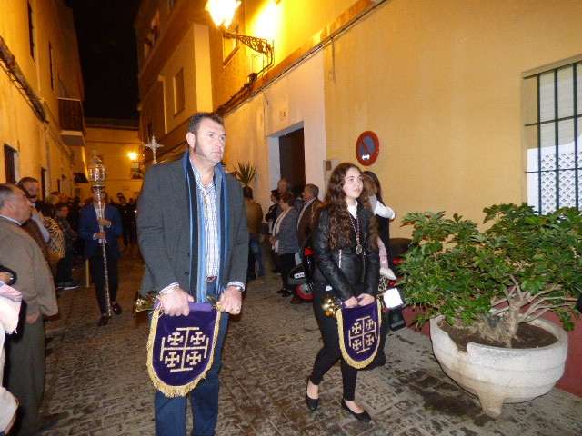 Sobre las siete de la tarde, con una plaza Bartolomé Pérez e inmediaciones llena de público, se iniciaba el cortejo que partía desde el interior de la parroquia de Nuestra Señora de la O donde Jesús presidía el altar mayor en la misa de rogativas celebrada a las seis de la tarde. Faroles y en torno a medio centenar de hermanos portando cirios precedían la imagen del Señor de Rota al que portaba su habitual cuadrilla de costaleros aunque a lo largo del recorrido algunos fieles pudieron sentir también el peso de Jesús sobre sus hombros.