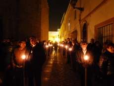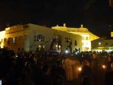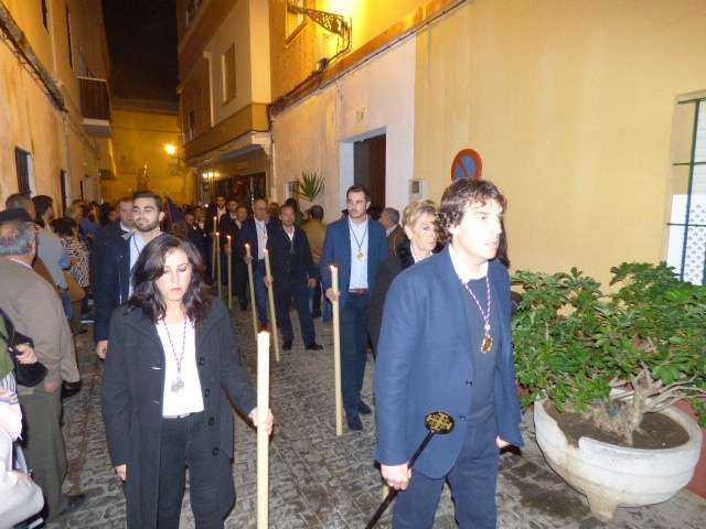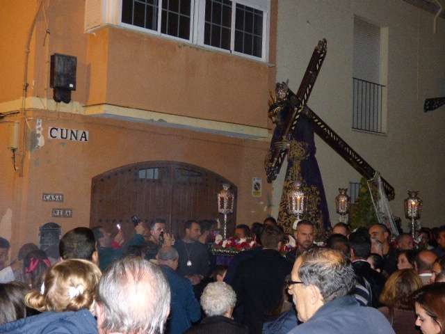 [Img #82762]Especiales momentos se vivieron en la salida, con la plaza Bartolomé Pérez e inmediaciones del Castillo de Luna  a oscuras sólo iluminado por la llama de los cirios encendidos, así como la entrada de la imagen de Jesús en el interior de la ermita de San Roque para saludar a la Hermandad de la Veracruz donde se encontraba Jesús en su Triunfal Entrada en Jerusalén en besapiés para celebrar la festividad de Cristo Rey que se conmemoraba ayer 25 de noviembre. El Nazareno también hizo paradas en la capilla de la Caridad y ante la Hermandad de San Isidro. En estos como en otros puntos, se hicieron paradas para rezar oraciones rogando que el agua que es tan necesaria llegue pronto.