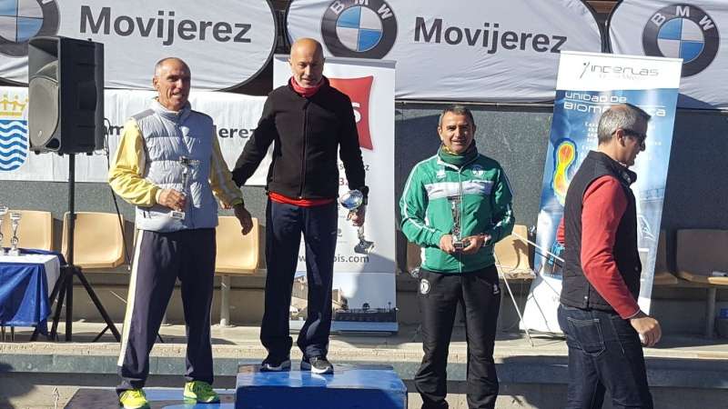 [Img #83278]Los atletas del Club Atletismo Roteño "Vía Verde", Manuel Gatón (1,16), quinto clasificado de la general y segundo de la categoría, y Fabián Martín-Niño (1,28), como tercero de la suya, subieron al podio del Estadio de Chapín tras la disputa, el pasado domingo, de la Media Maratón Ciudad de Jerez.