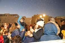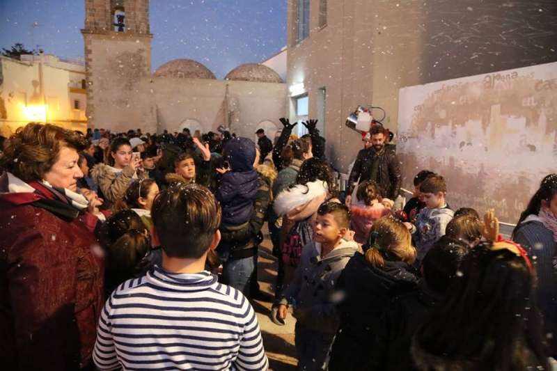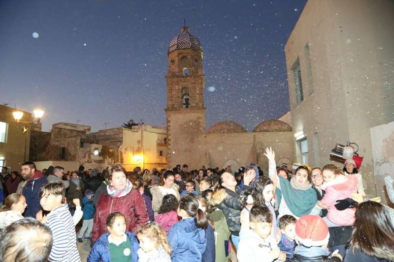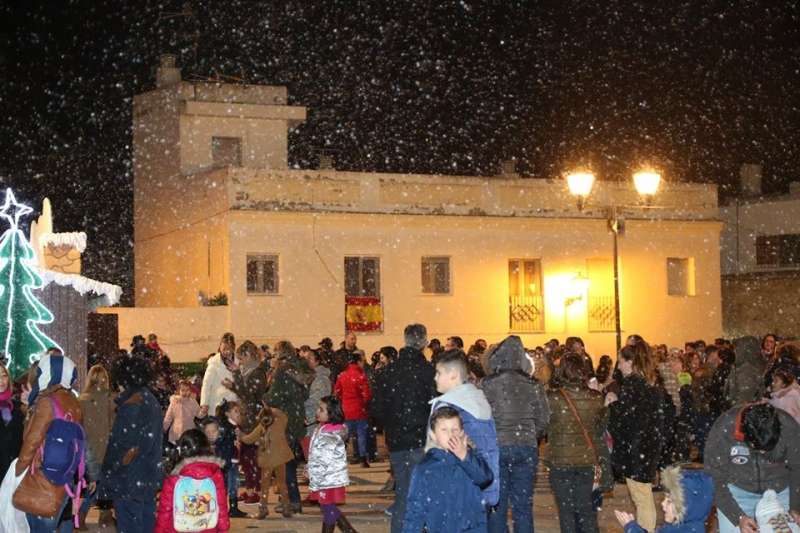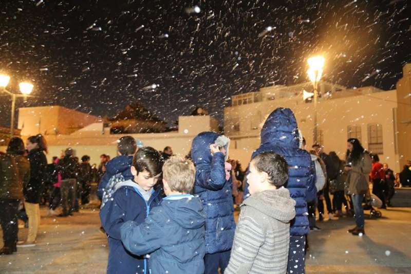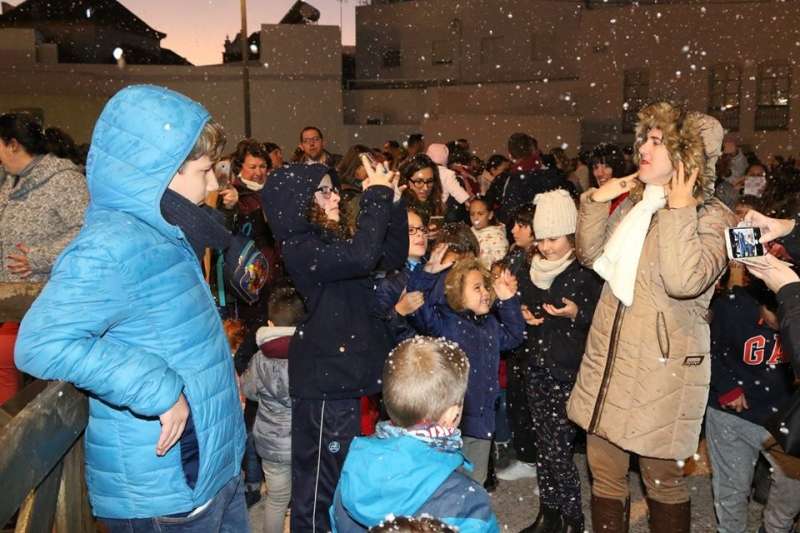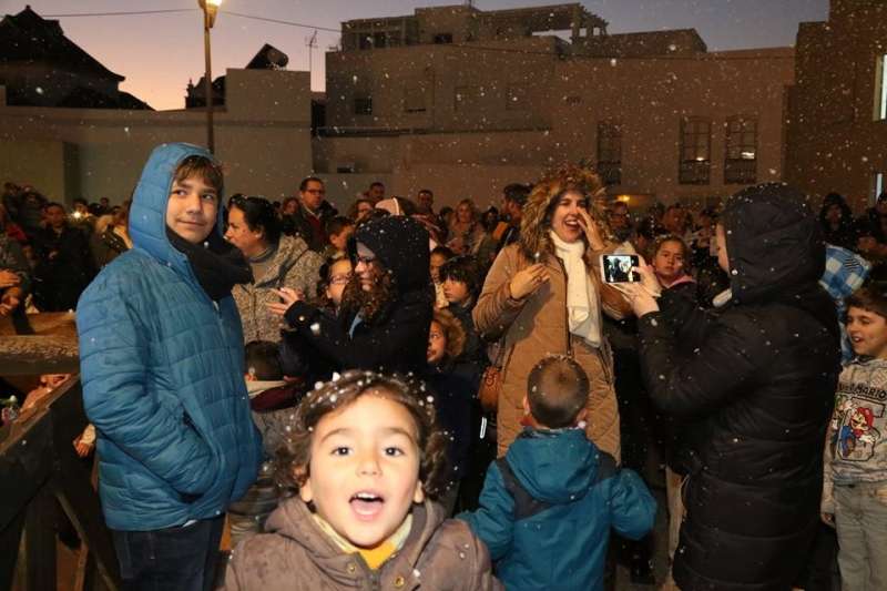 La nevada tuvo lugar junto a la casa de Papa Noel que hasta esta tarde de sábado se puede visitar de 6 de la tarde a 9 de la noche.